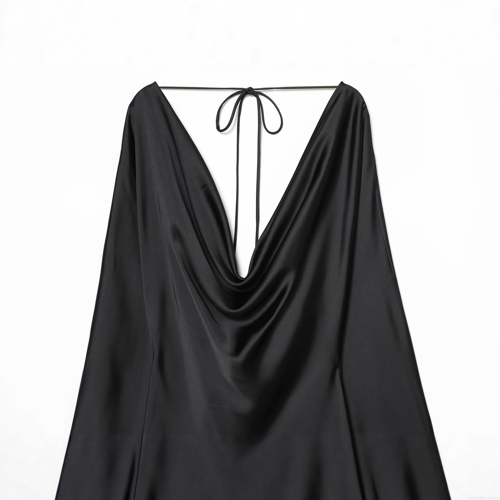 Solid Color, Backless Tie, Satin Texture, Deep V-neck