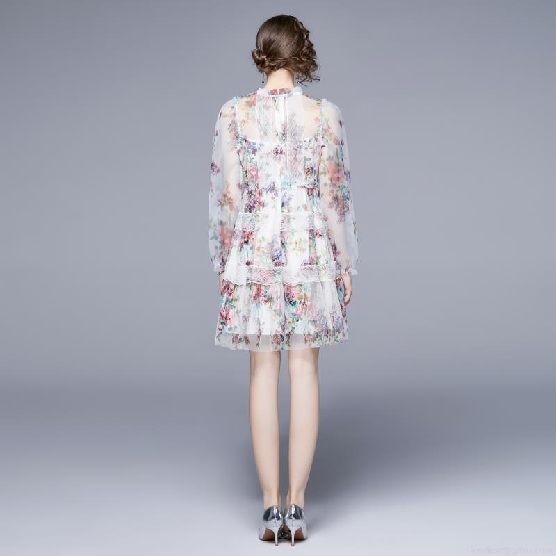 Splice, Floral, Lace, Floral Pattern, Waist shaping, Printing, Mesh