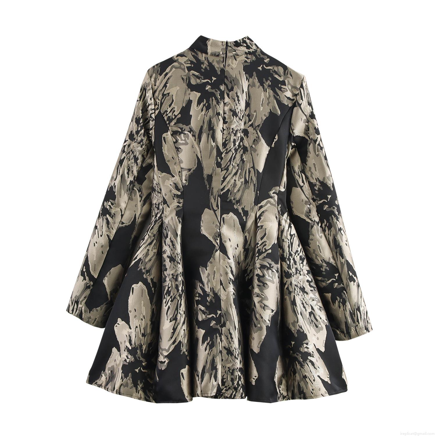 • Elegant Jacquard Long Sleeve Dress Women V-Neck Hollow Out Waist Retro Puffy Mini Dress For Party Socialite Night Out Clothing