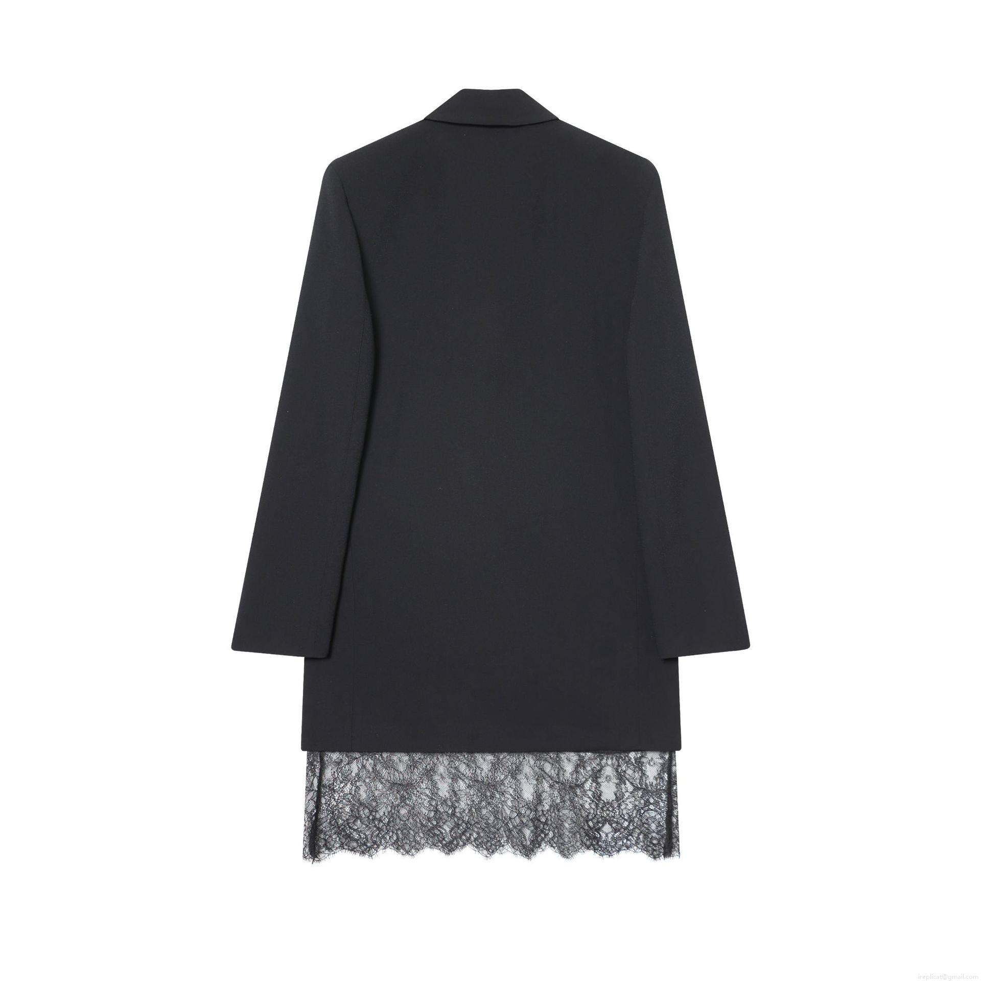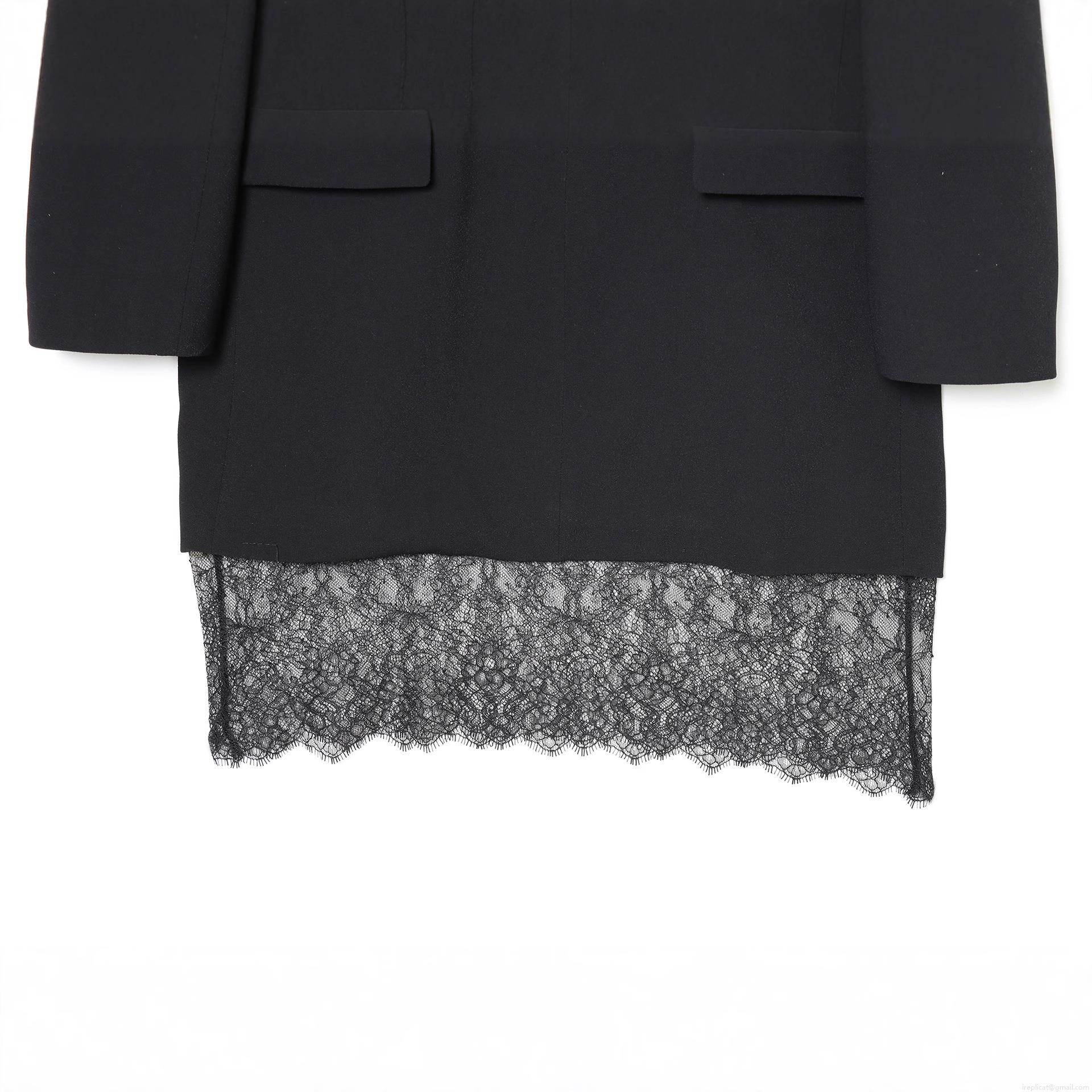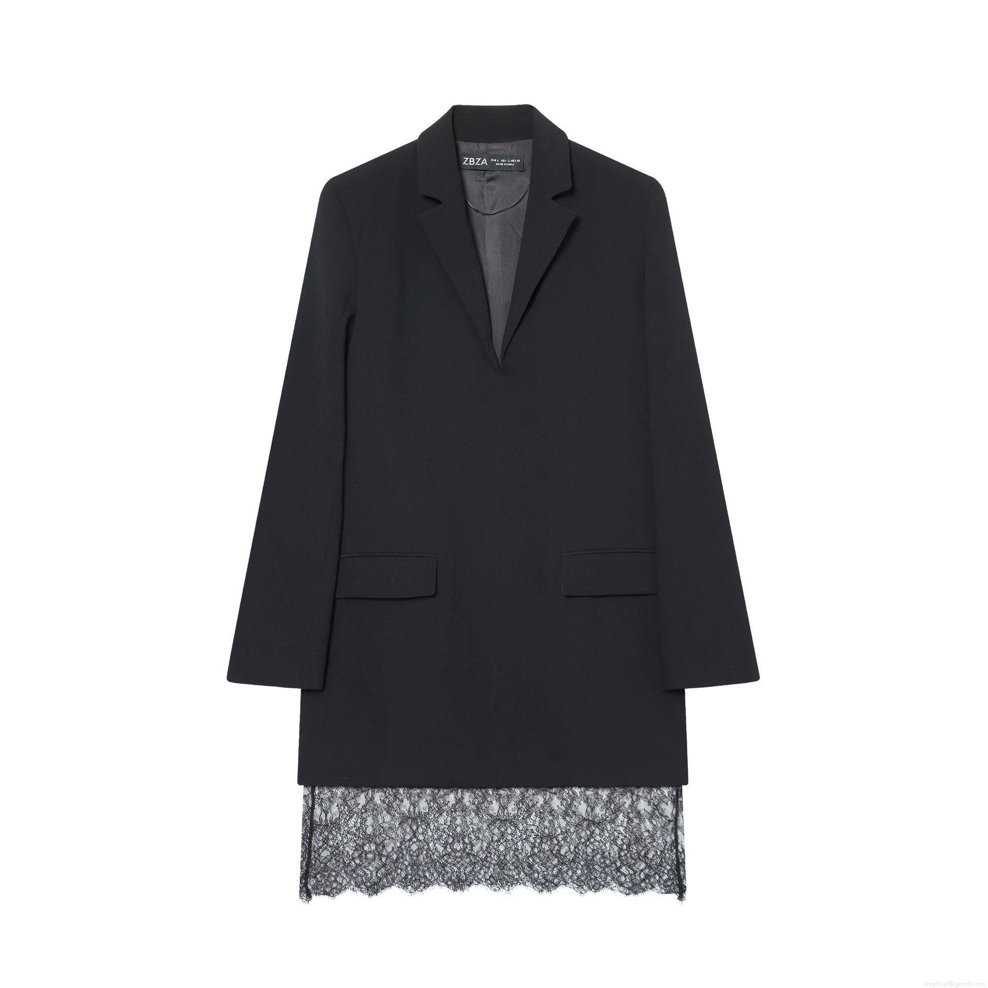 Solid Color, Zipper, V-neck, Lace Patchwork, Suit Lapel