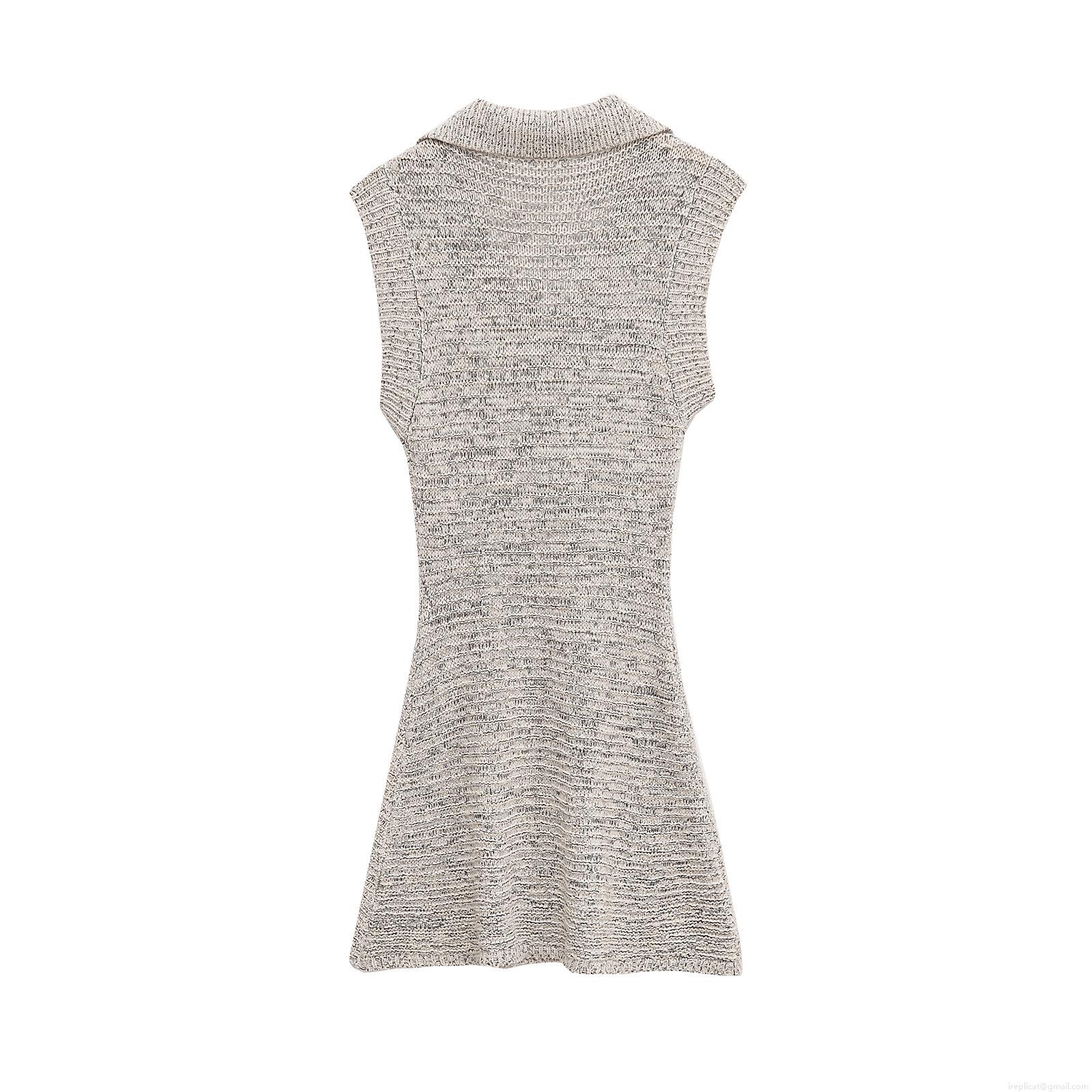 • Elegant Mercerized Cotton Knitted Sleeveless Mini Dress With Bow Tie V Neck Lapel A-Line Solid Oatmeal Dress For Party Dating Women Clothing