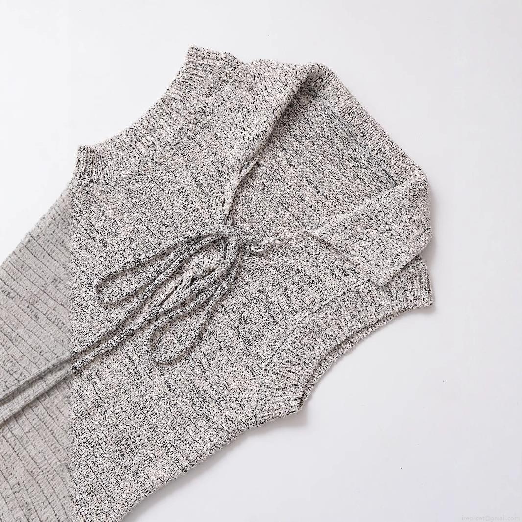 Elegant Mercerized Cotton Knitted Sleeveless Mini Dress With Bow Tie V Neck Lapel A-Line Solid Oatmeal Dress For Party Dating Women Clothing