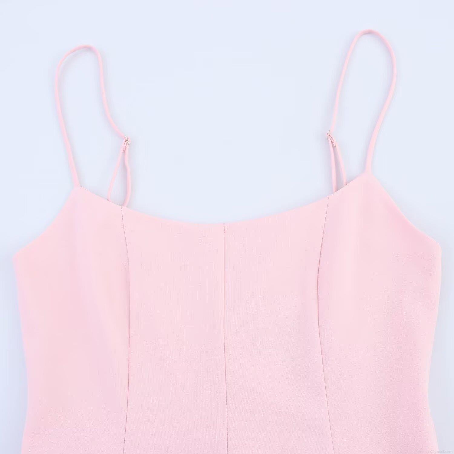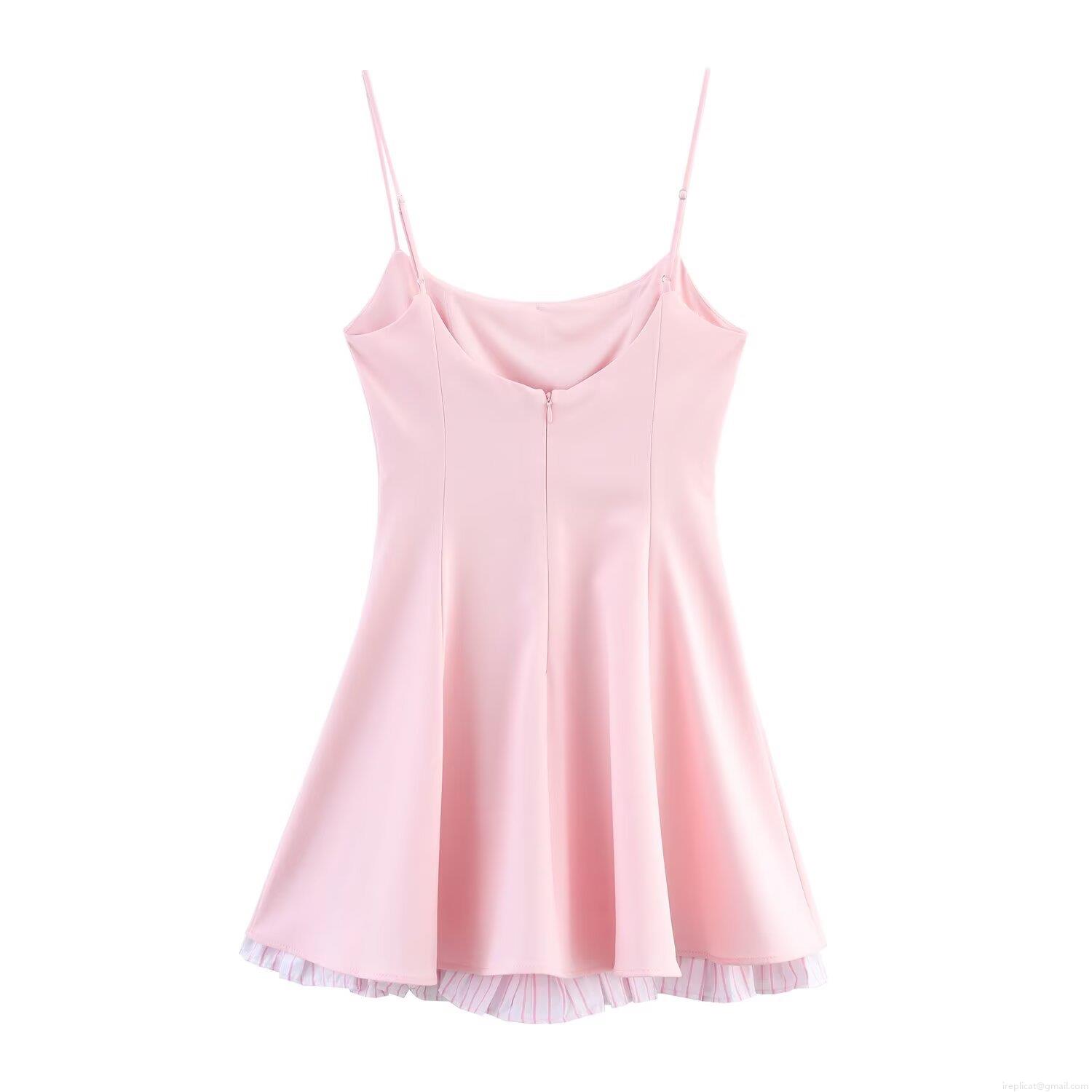 • Elegant Pink Polyester Spaghetti Strap Mini Dress With Striped Patchwork Hem Sexy Sleeveless A-Line Party Clubwear For Women Girls Summer Fashion