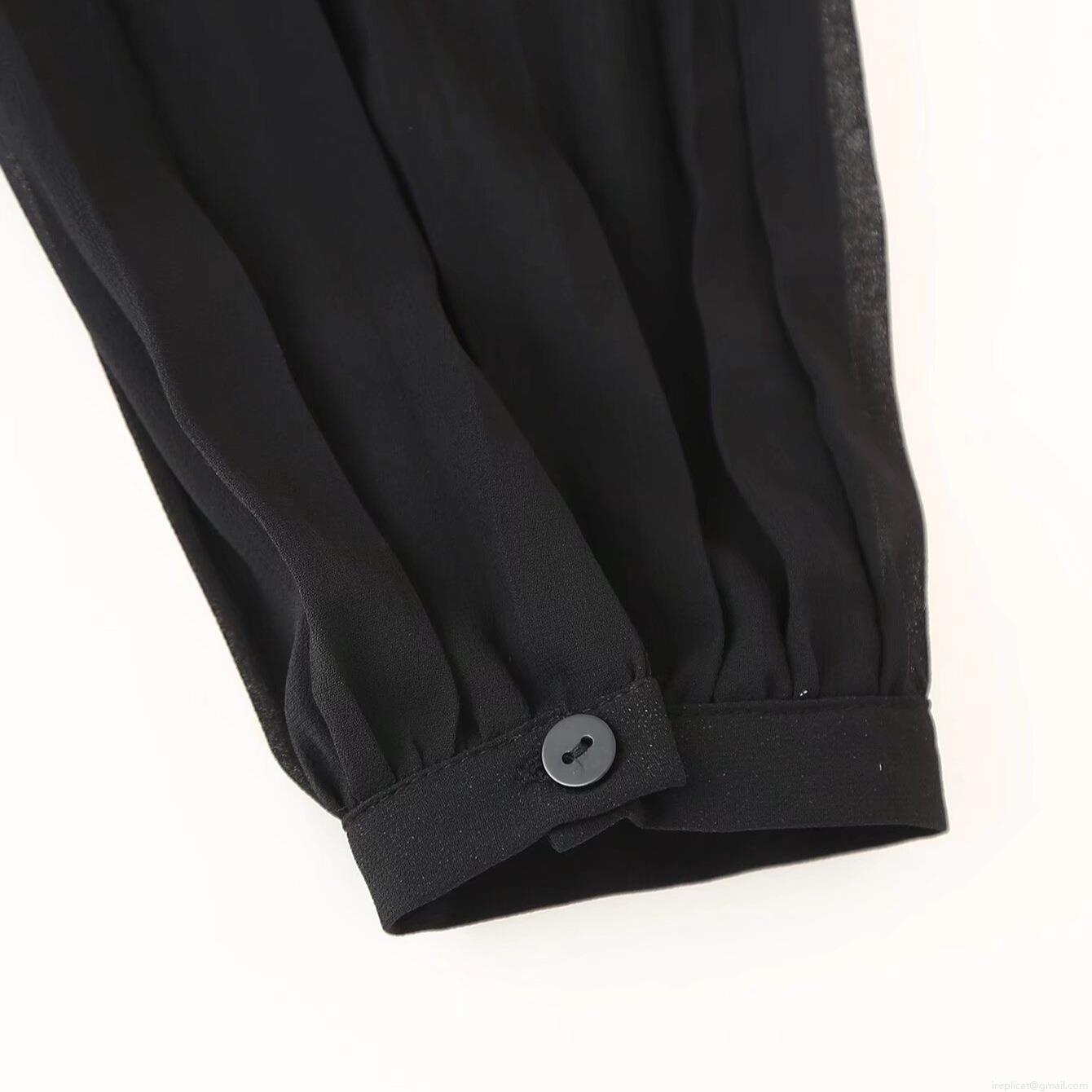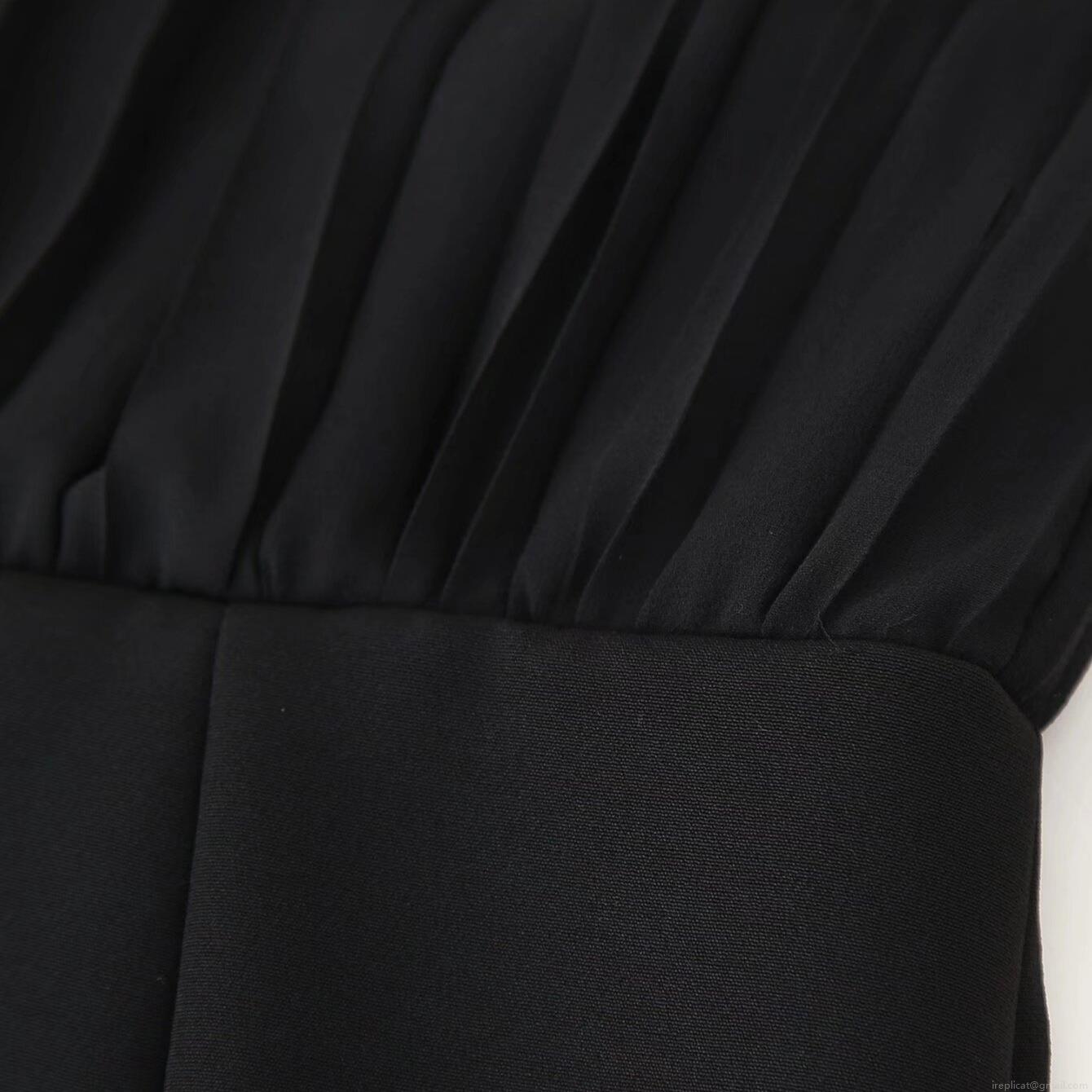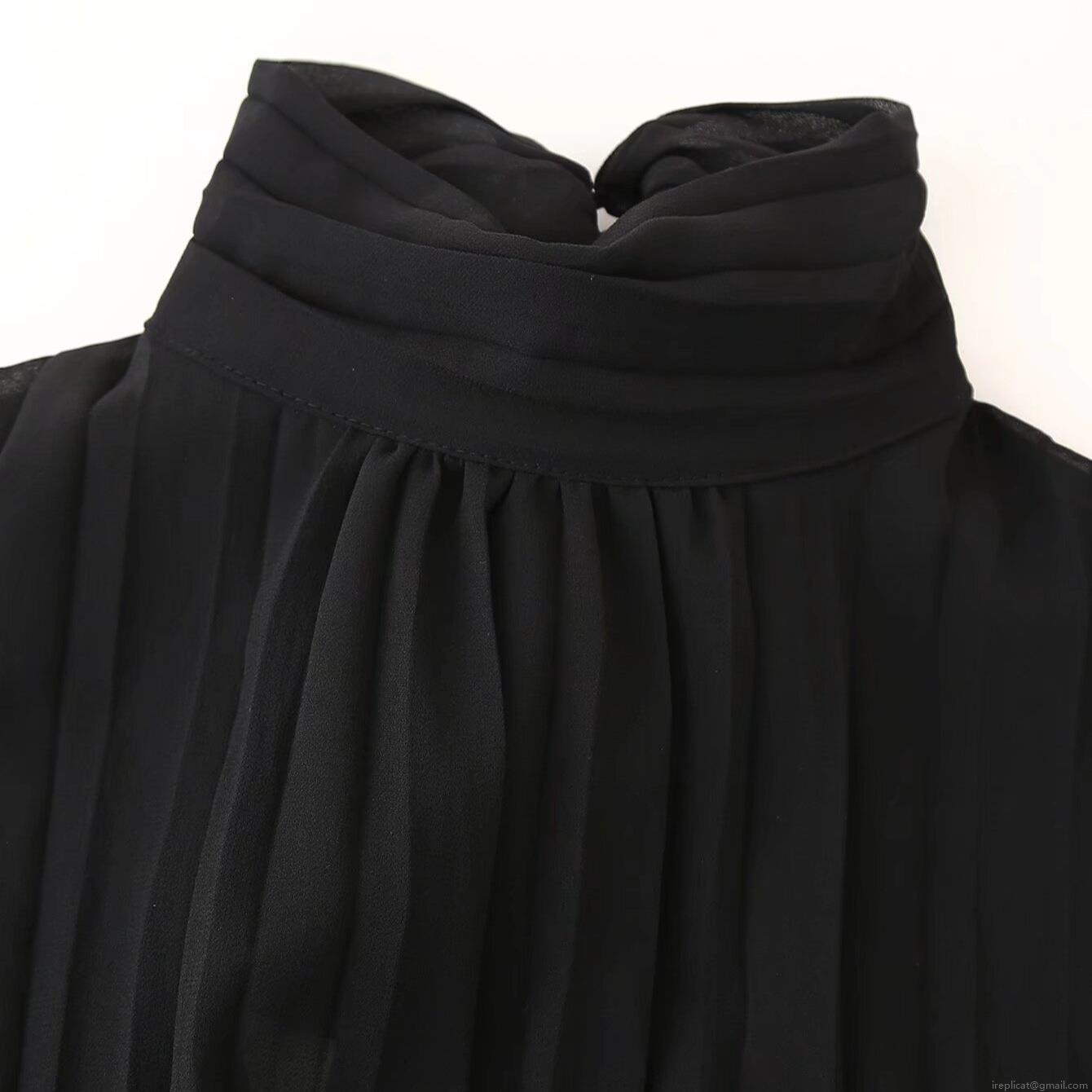 • Elegant Pleated Chiffon Dress Women Mock Neck Tie-Up Long Sleeve Bodycon Mini Dress For Office Daily Commute Slim Fit Solid Black Pullover Robe