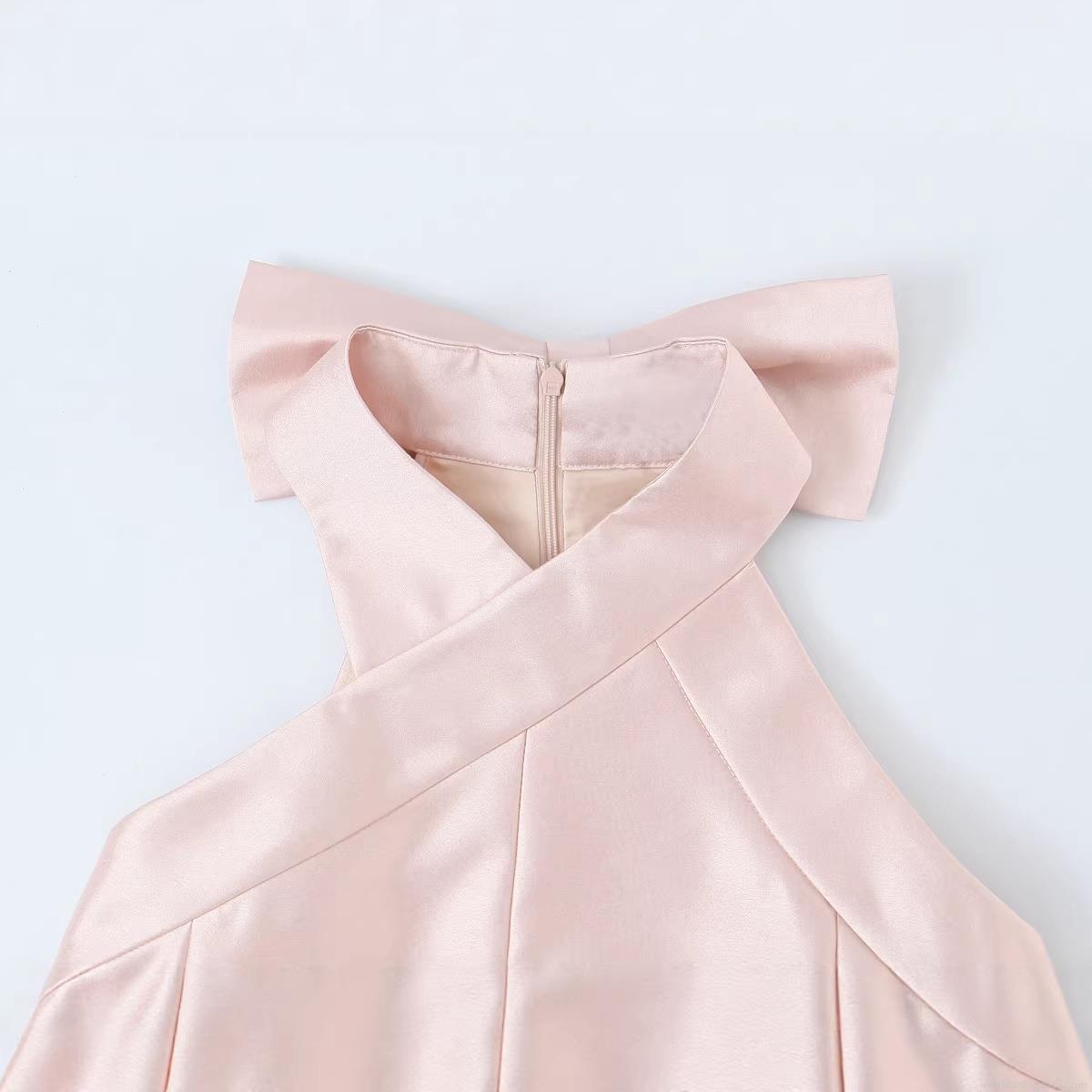 • Elegant Satin Halter Neck Mini Dress With Backless Large Bow Design Sexy Sleeveless Bodycon Party Cocktail Dress For Women Wedding Guest Evening Clubwear Pink