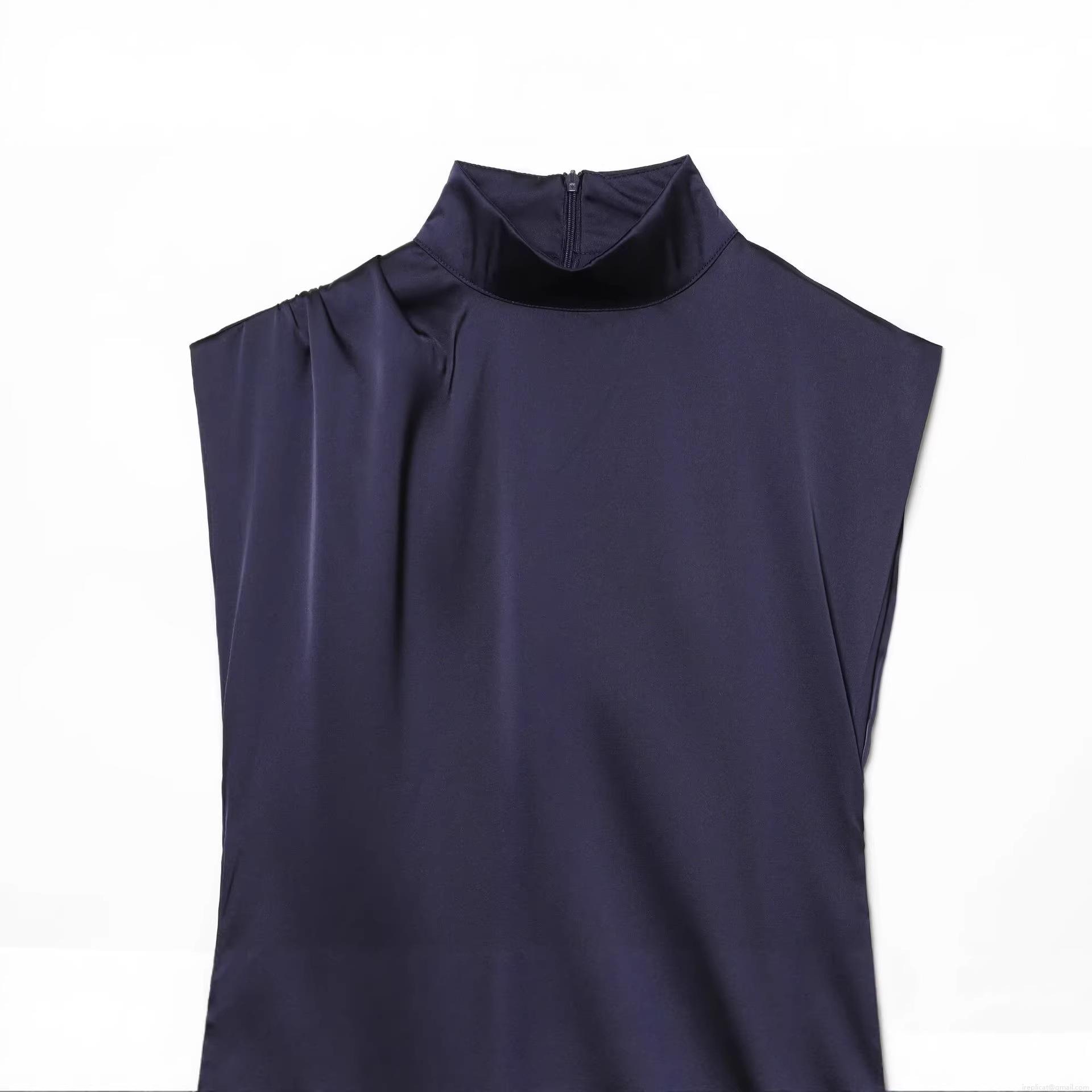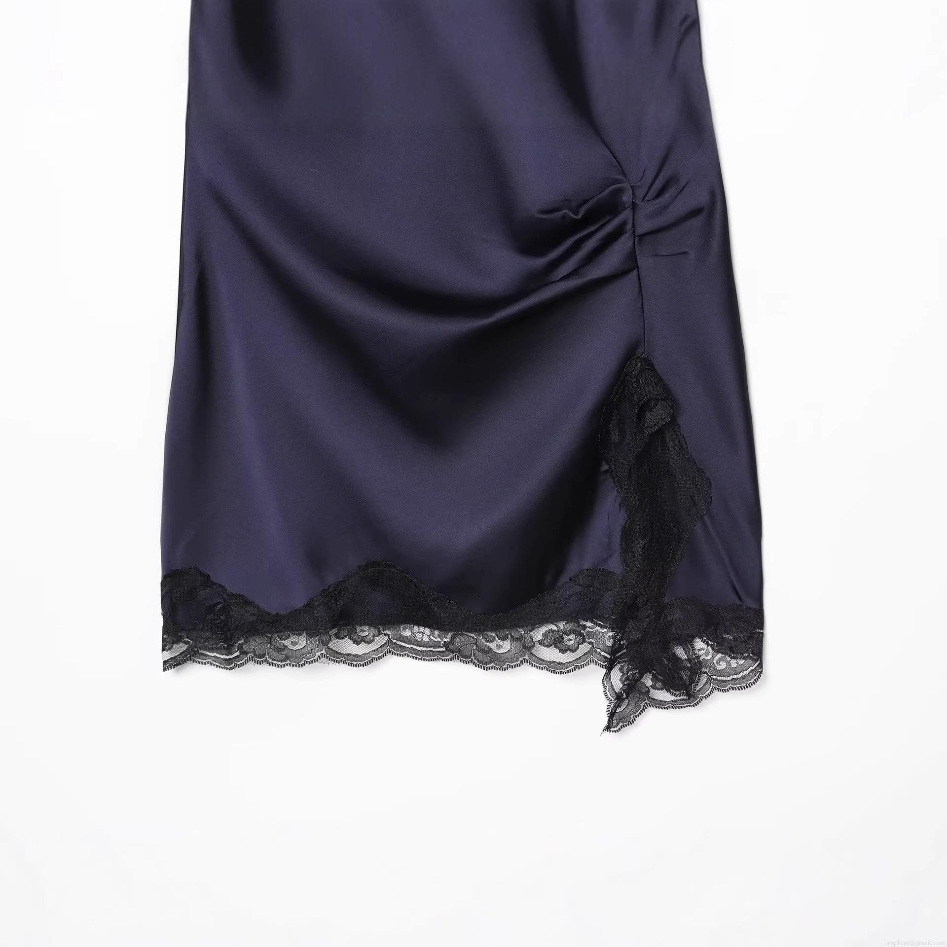 • Elegant Satin Mini Dress With Lace Hem Mock Neck Sleeveless Bodycon Ruched Party Dress For Women Night Out Evening Dress