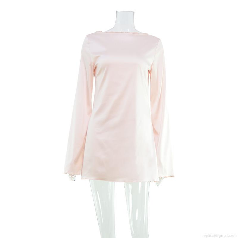 • Elegant Satin Mini Dress Women Round Neck Long Sleeve Solid Color A-Line Short Dress For Party Dating Casual Wear Soft Comfortable Polyester Spandex Dress