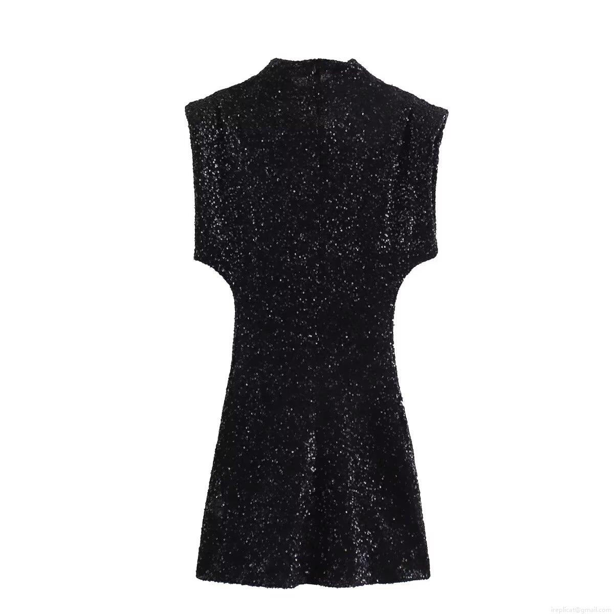 • Elegant Sequin Sleeveless Mini Dress High Neck Bodycon Party Nightclub Dress For Women Shiny Polyester Evening Gown Glamorous Slim Fit Dress