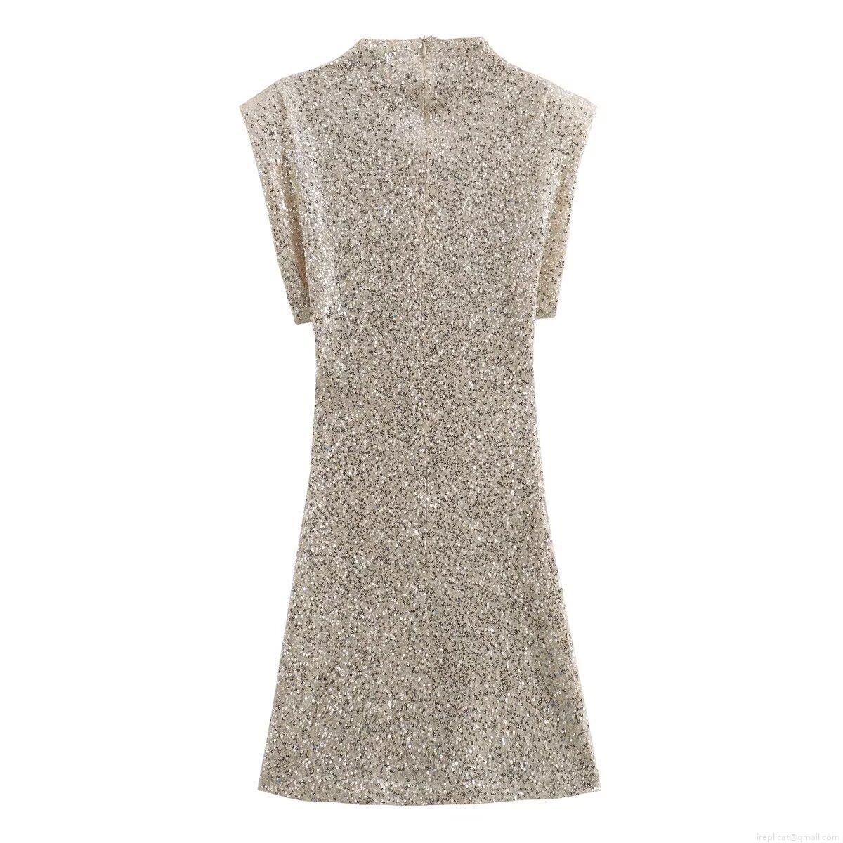 Elegant Sequin Sleeveless Mini Dress High Neck Bodycon Party Nightclub Dress For Women Shiny Polyester Evening Gown Glamorous Slim Fit Dress