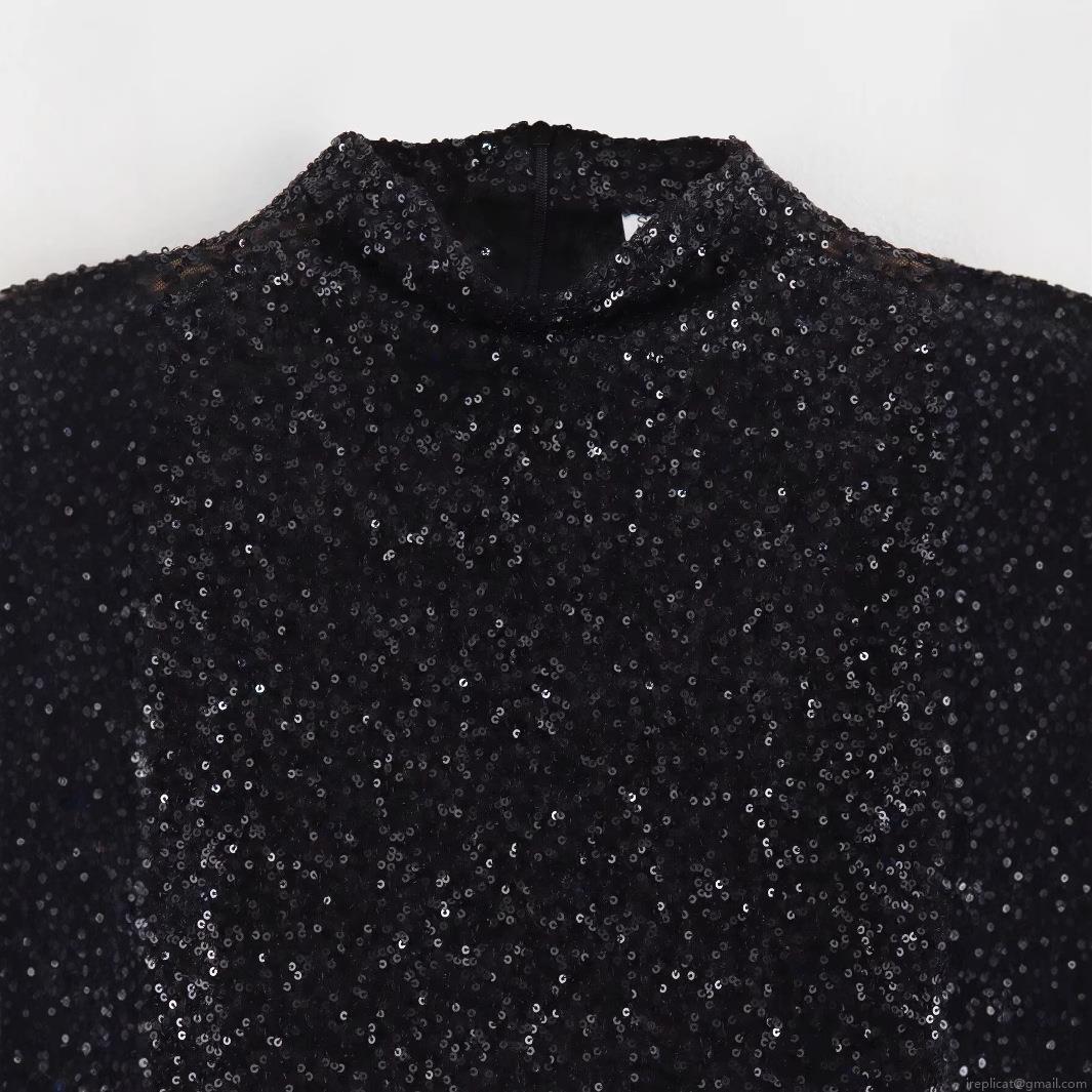 Solid Color, Sequin, Shoulder Pads, Invisible Zipper