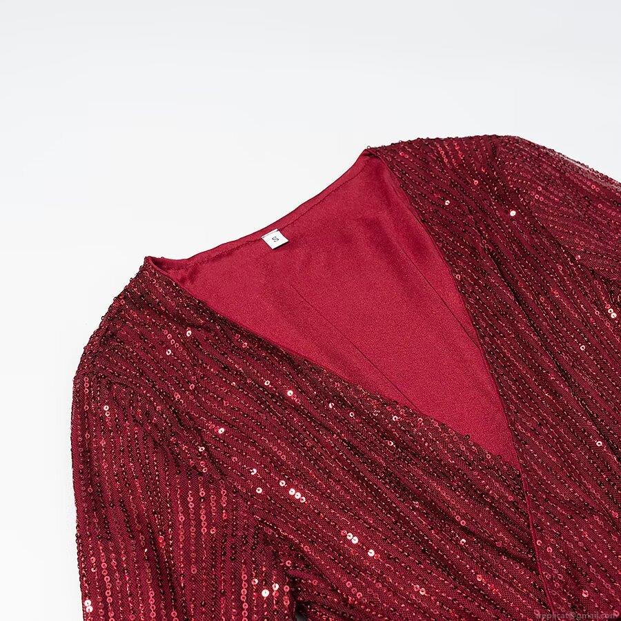 • Elegant Sequin V-Neck Long Sleeve Mini Dress For Women Sexy Bodycon Wrap Party Evening Banquet Gown Shiny Polyester Spandex Short Dress