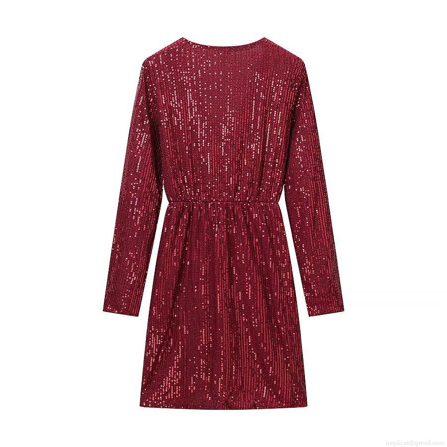 Elegant Sequin V-Neck Long Sleeve Mini Dress For Women Sexy Bodycon Wrap Party Evening Banquet Gown Shiny Polyester Spandex Short Dress