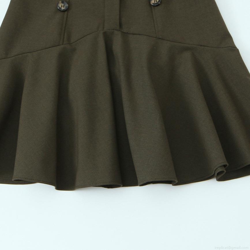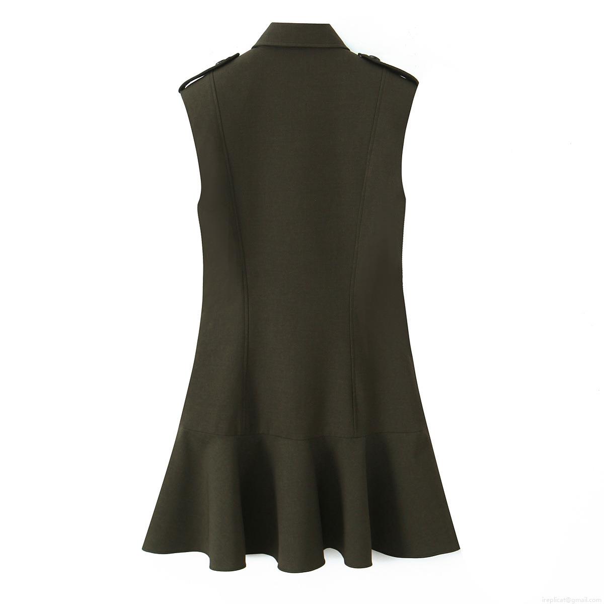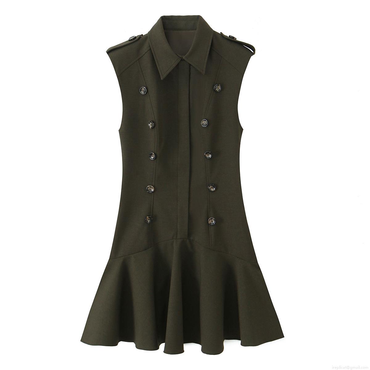 • Elegant Sleeveless Double Breasted Mini Dress Women Solid Color Lapel Collar Epaulets Ruffle Hem Military Style Polyester Blend Office Party Casual Wear