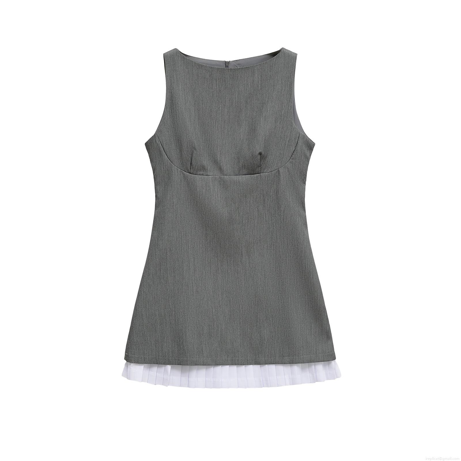 • Elegant Sleeveless Mini Dress Women Contrast White Pleated Hem Spliced Round Neck Bodycon Summer Party Short Vest Dress Ladies Polyester