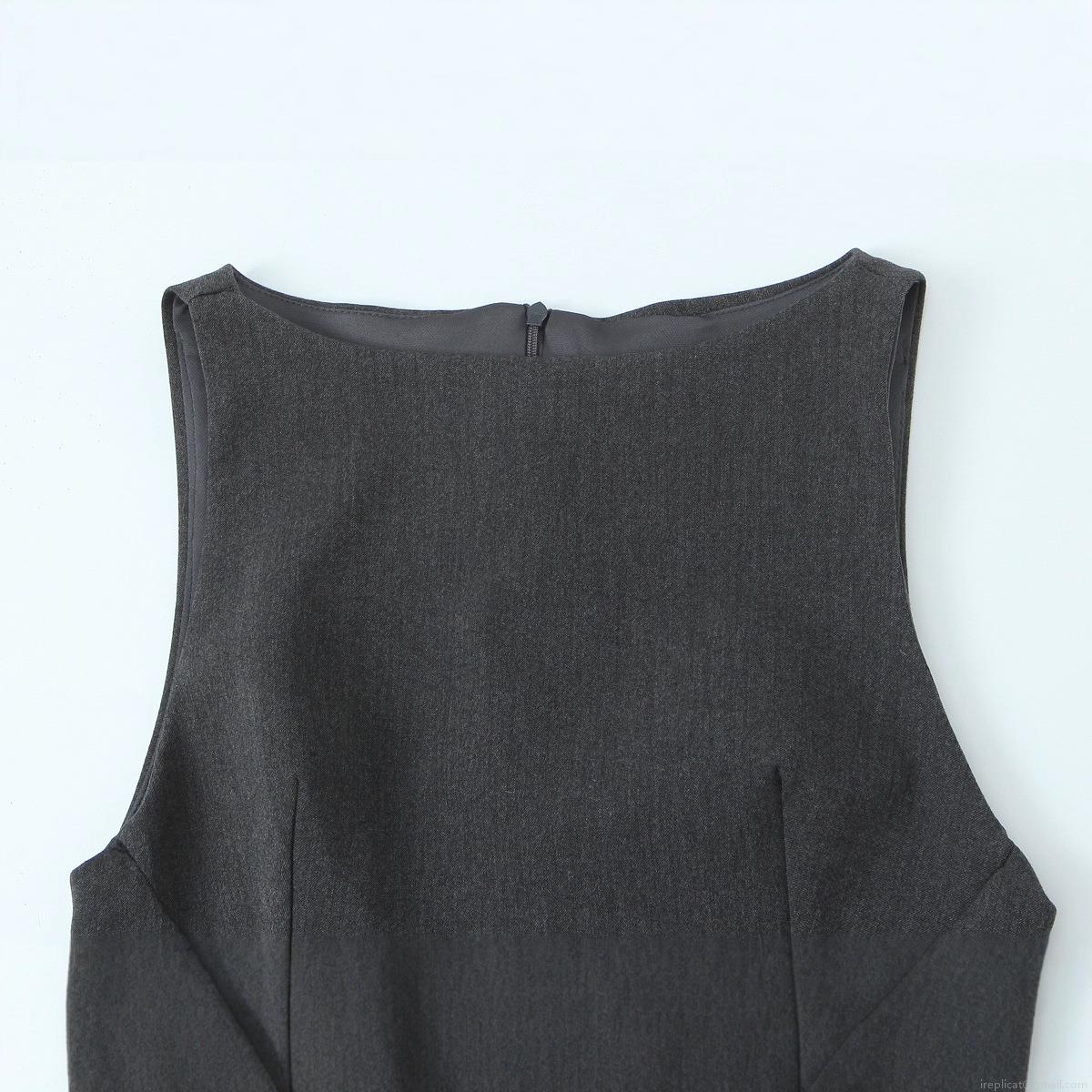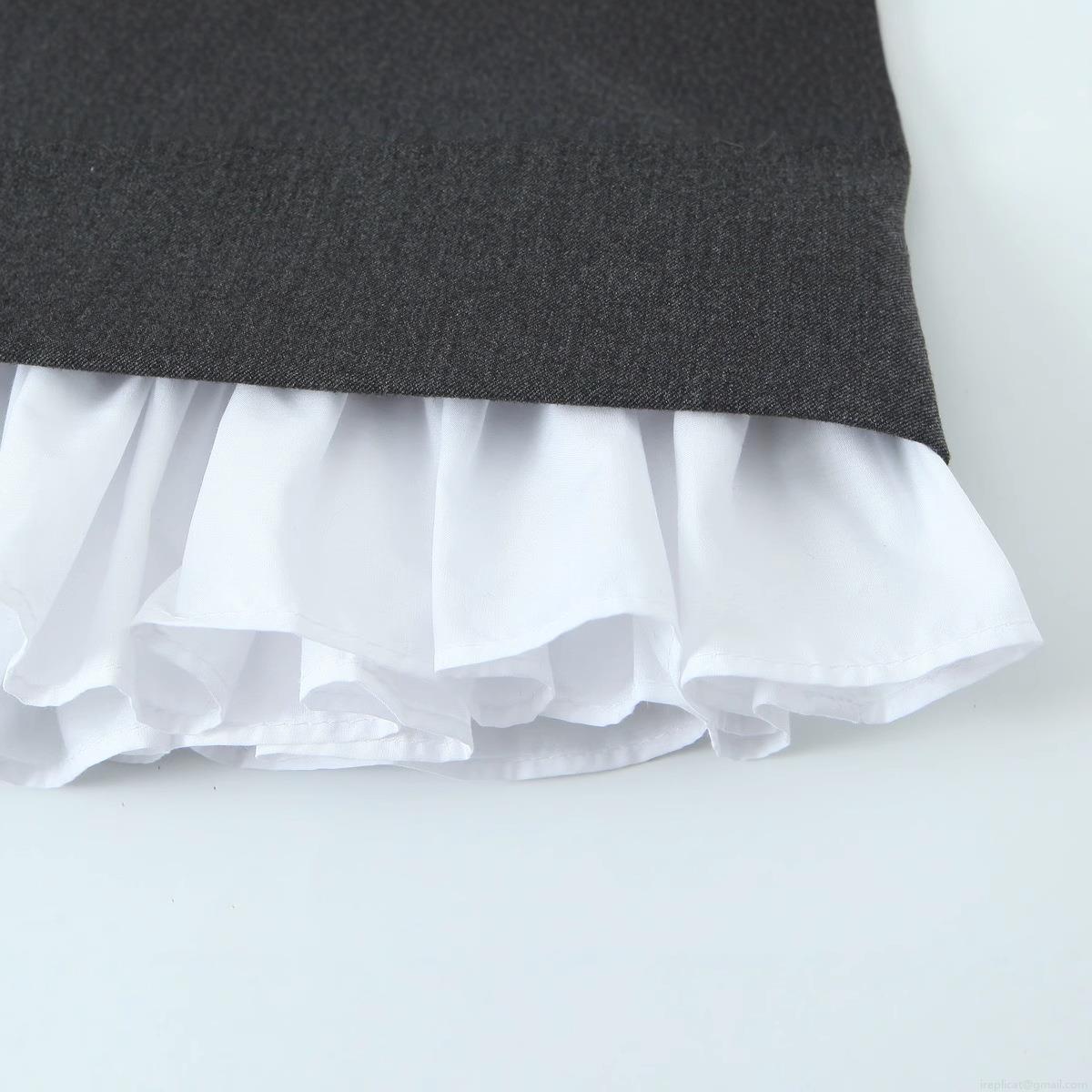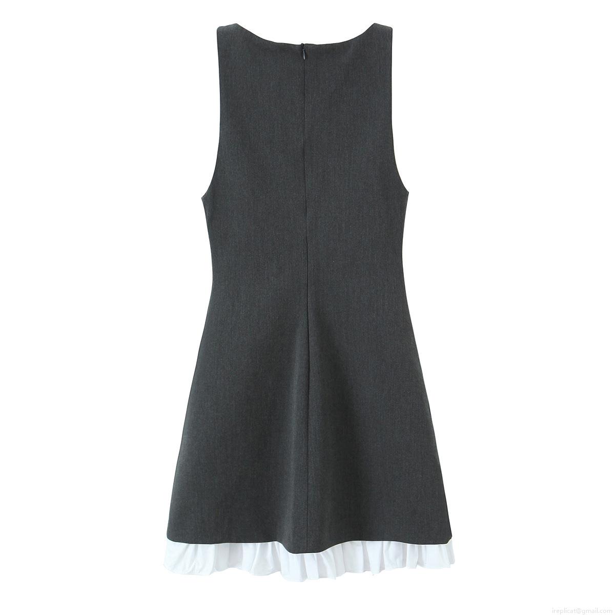 Elegant Sleeveless Mini Dress Women Polyester Woven Patchwork Ruffled Hem Short Tank Dress Grey White Color Block For Summer Party Casual Fashion