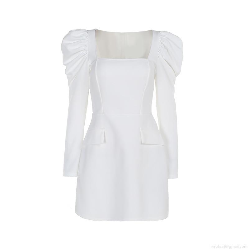 • Elegant Square Neck Puff Sleeve Mini Dress Women Slim Fit Polyester Spandex Solid Color Short Party Dress For Dating Social Event Ladies Temperament A-Line Bodycon Dress