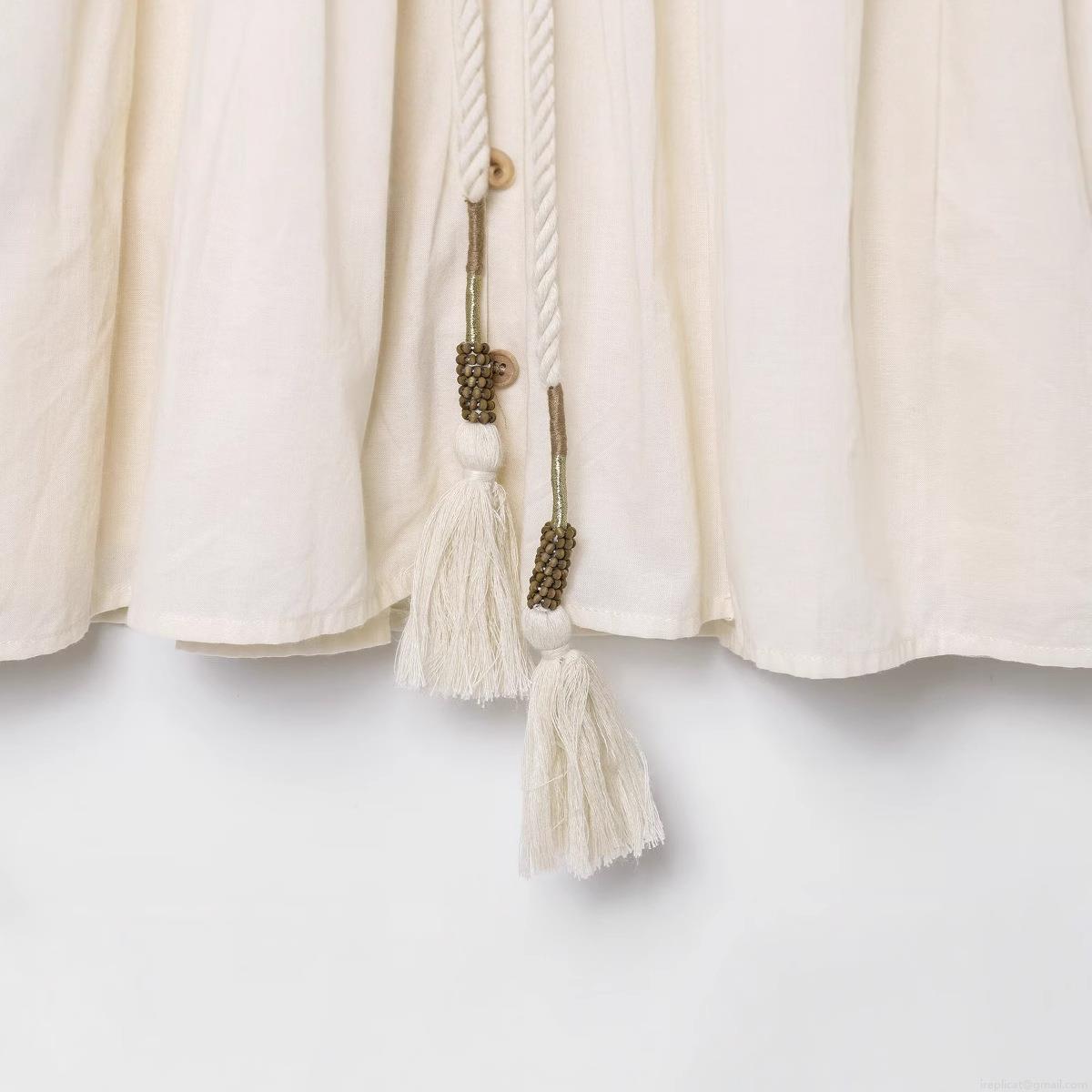 Floral, Tassel, Embroidery, Ruffles, Wooden Buckle, V-neck