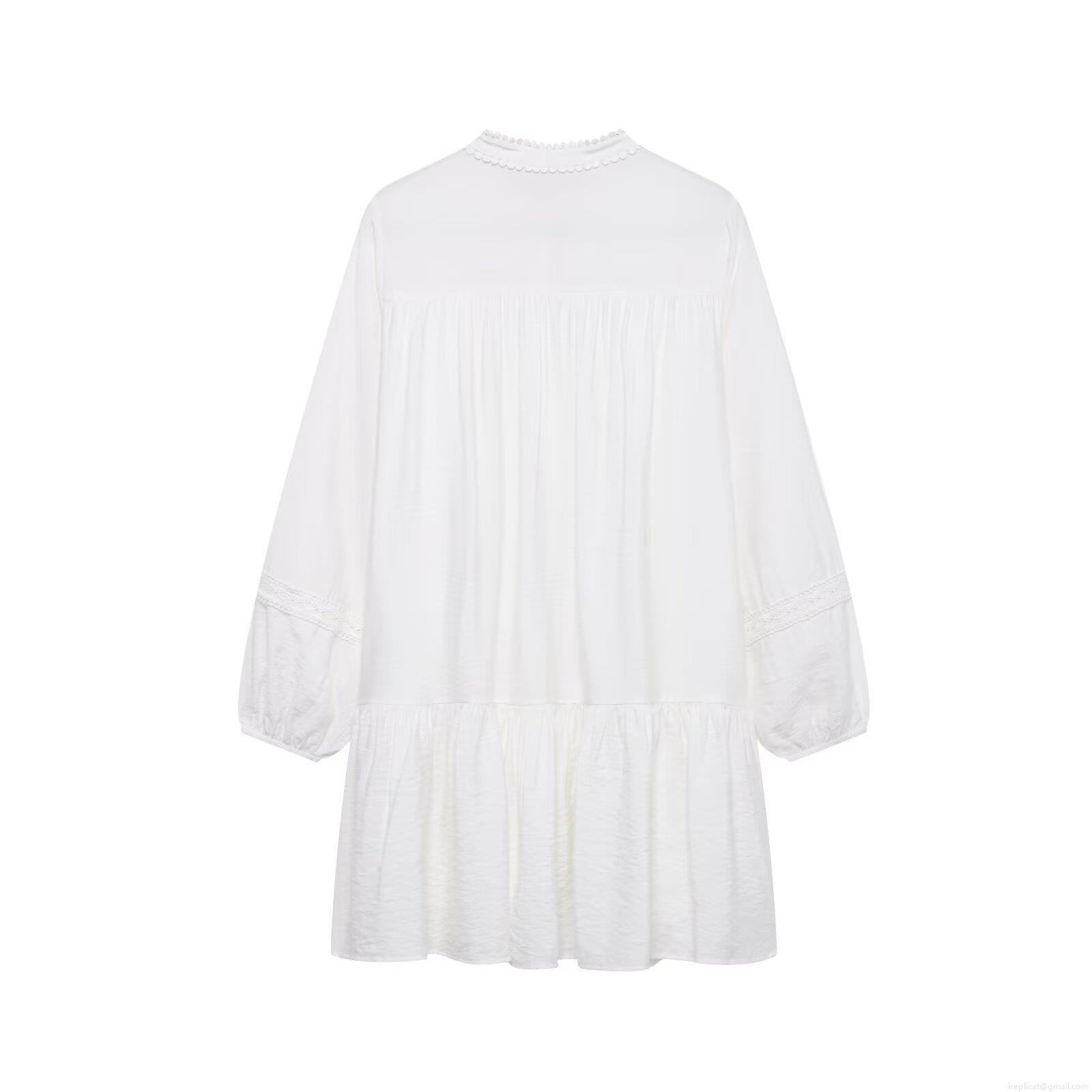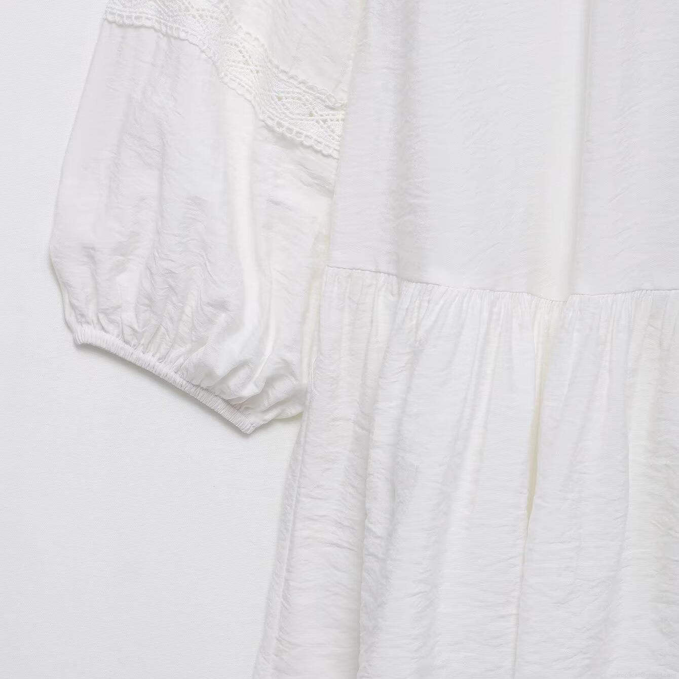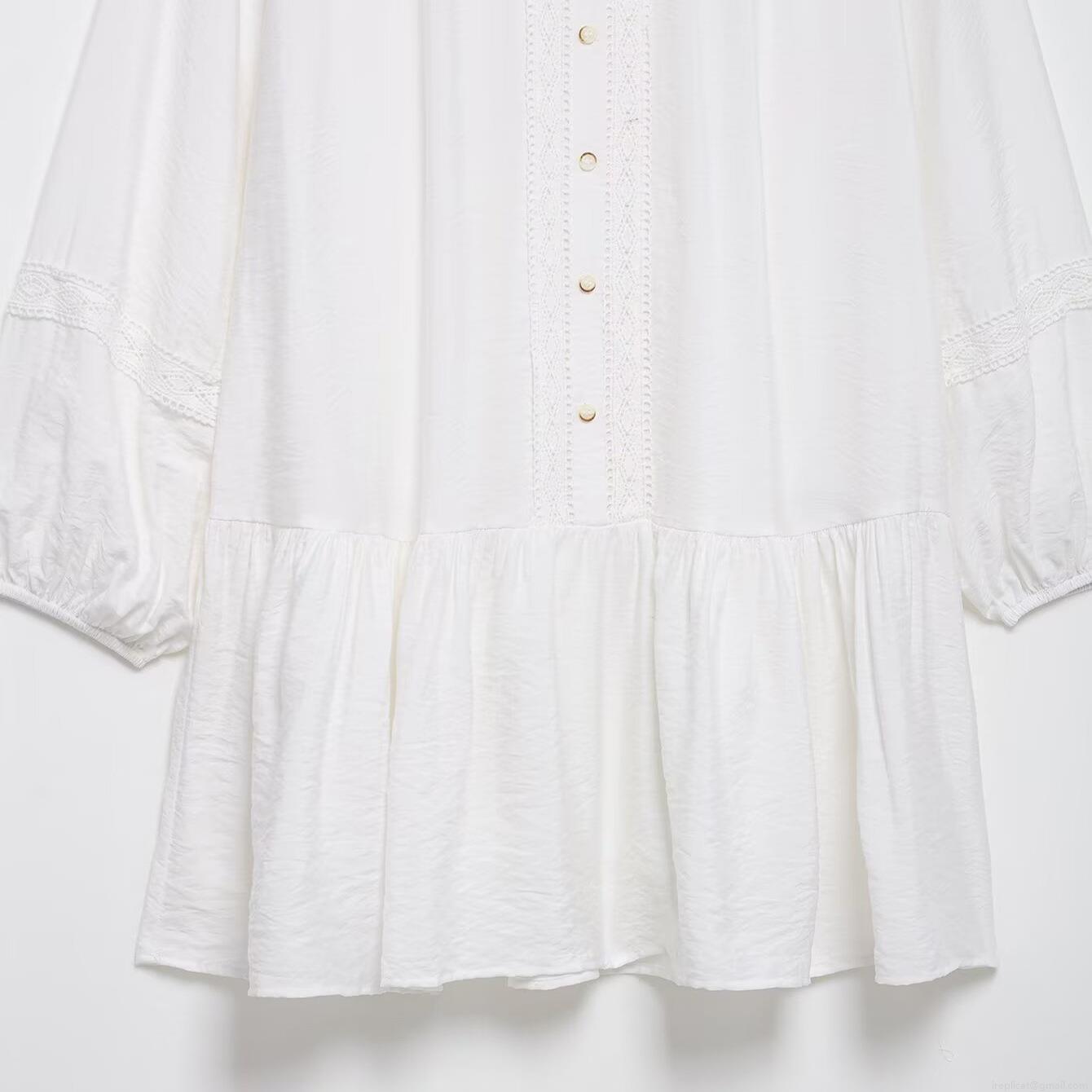 • Elegant White Long Sleeve Mini Dress For Women Featuring Lace Embroidery And Ruffle Hem Chic A-Line Button Down Party Commute Dress