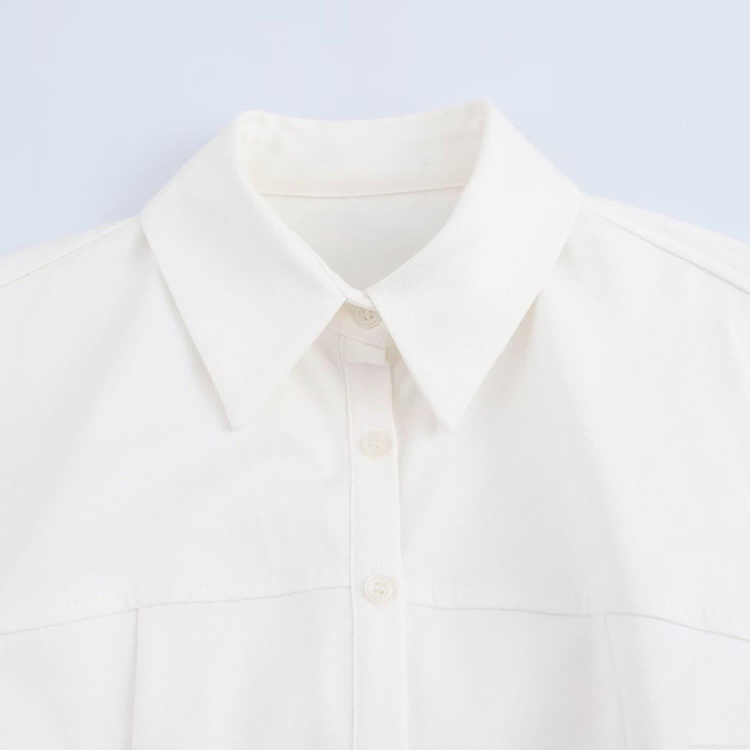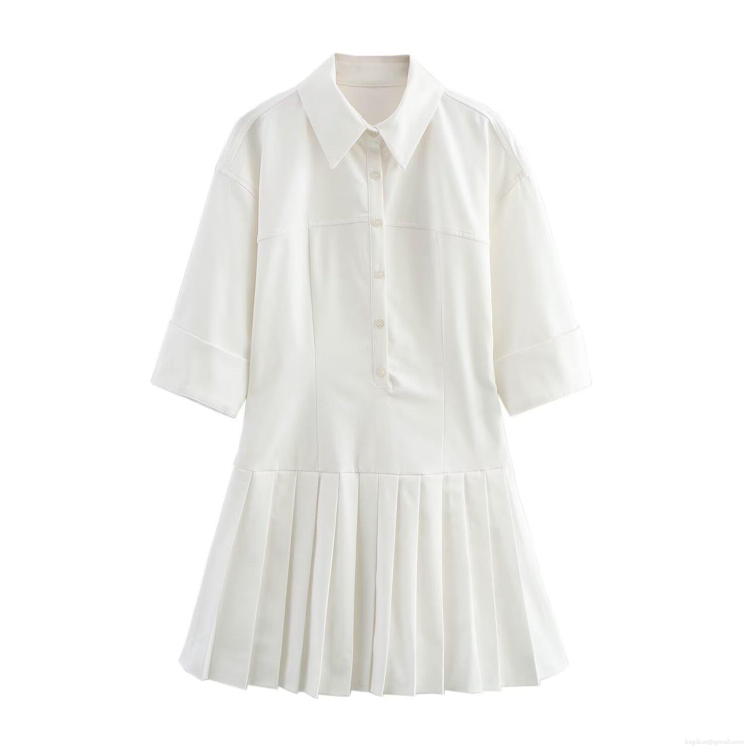 • Elegant White Mini Shirt Dress Short Sleeve Pleated Hem Button Front Lapel Collar Polyester Blend Casual Fashion A-Line Dress for Women