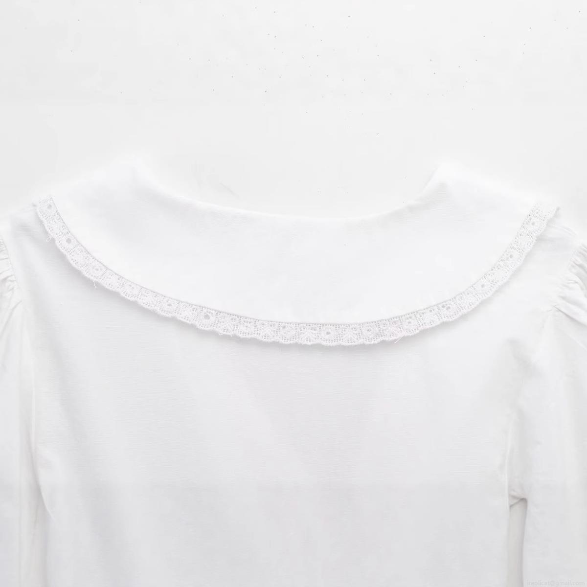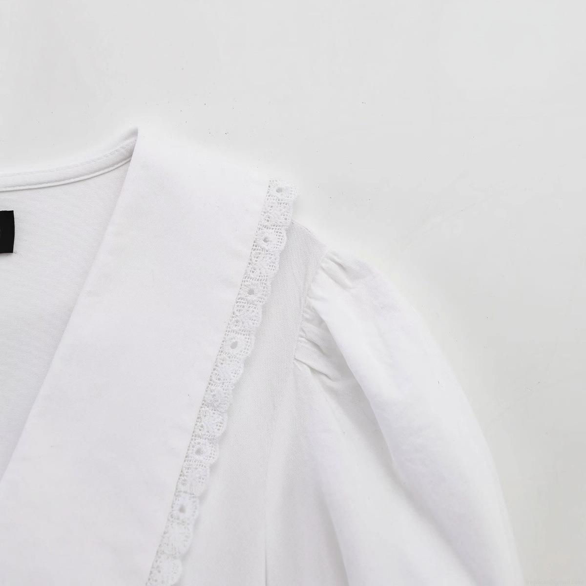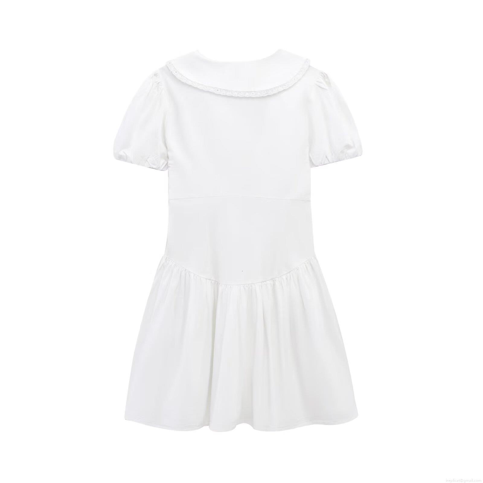 • Elegant White Peter Pan Collar Lace Trim Short Sleeve Mini Dress Retro Solid Color Ruffle Hem Polyester Dress For Women Summer Casual Party Dating