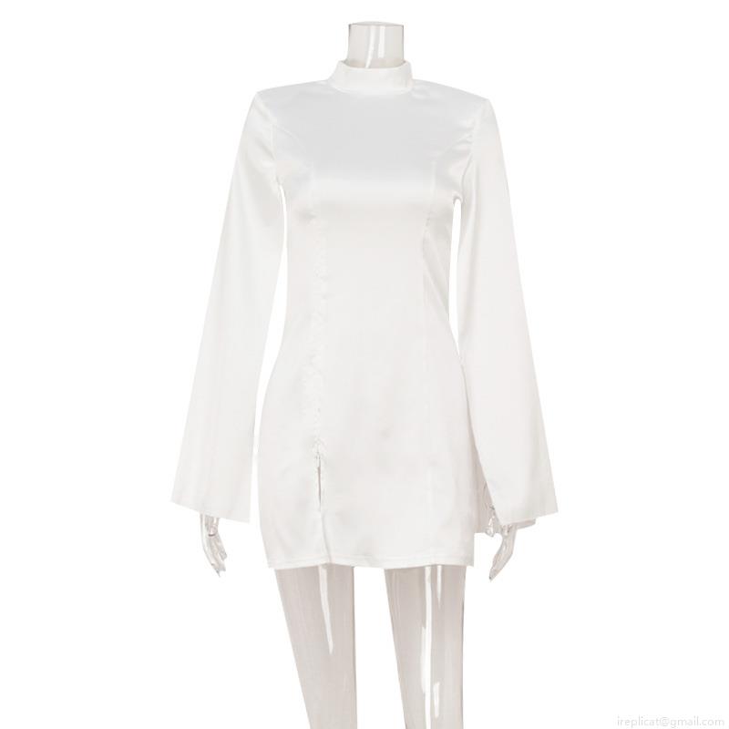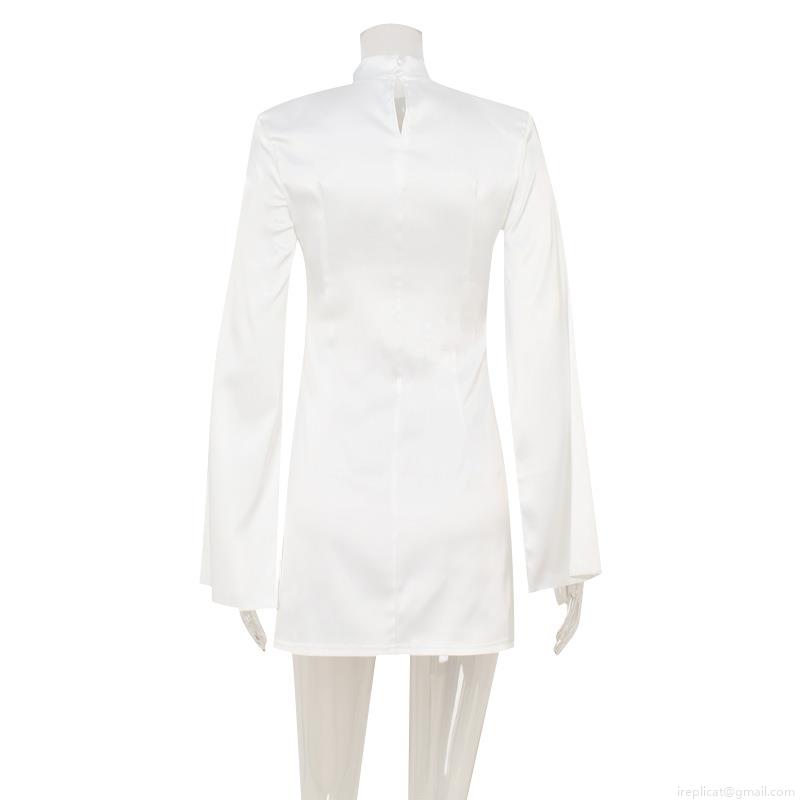 • Elegant White Satin Cape Sleeve Mini Dress For Women High Neck Slim Fit Bodycon Party Evening Slit Short Dress