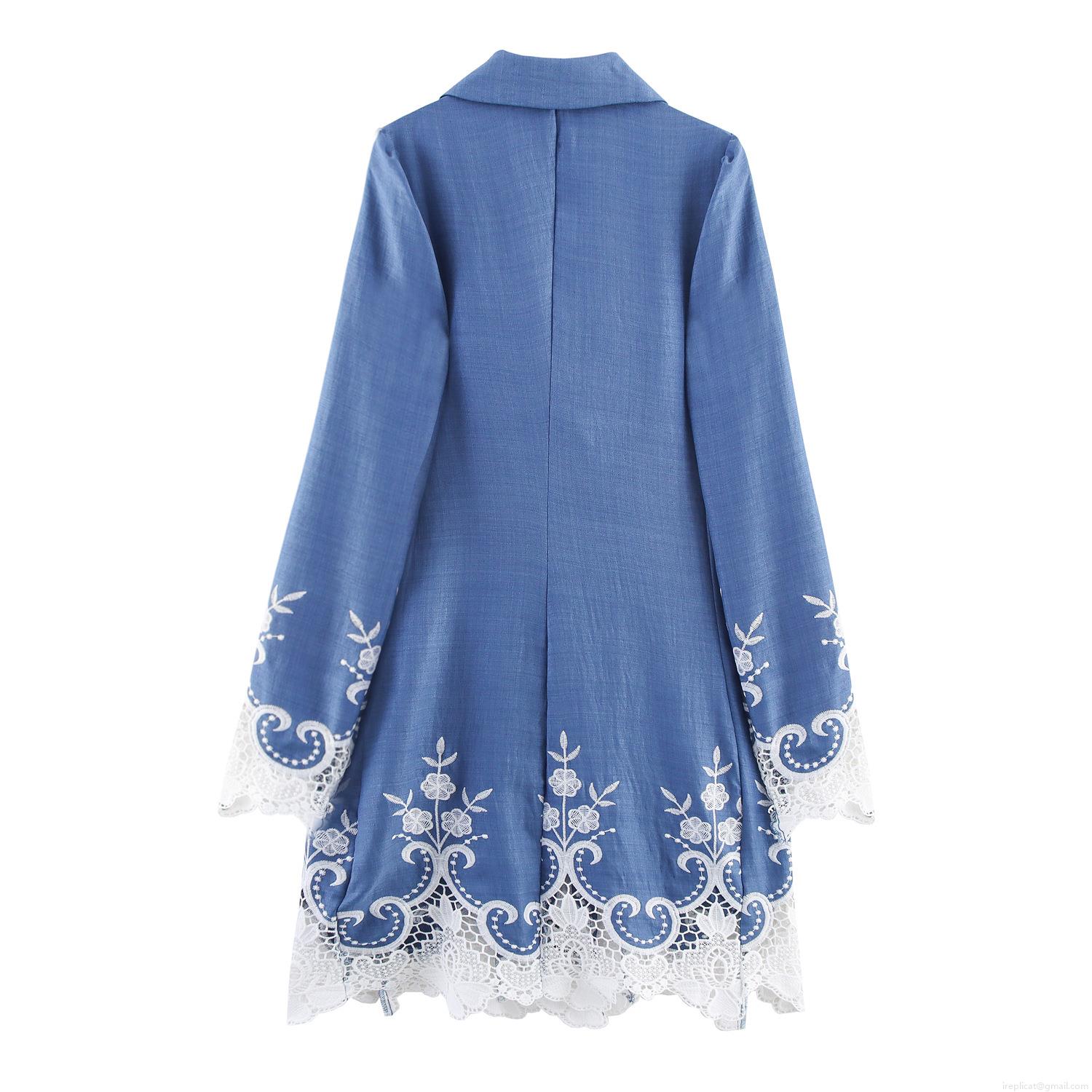 Solid Color, Embroidery, Lace Patchwork, Double-breasted, Openwork Pattern, Metal Buttons