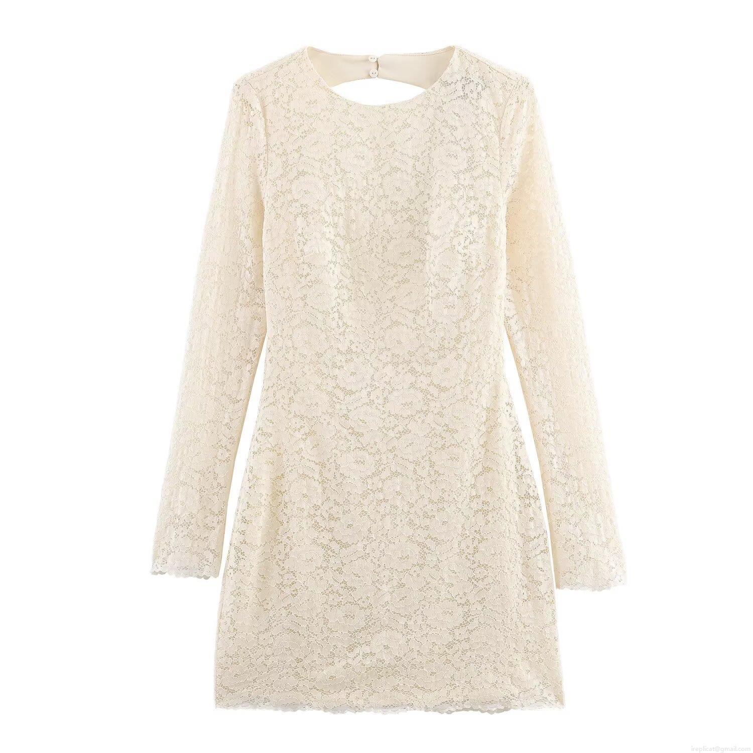 Elegant Women Lace Long Sleeve Mini Dress With Sexy Backless Hollow Out Design High Waist Bodycon Short Dress For Party Club Ladies Wear