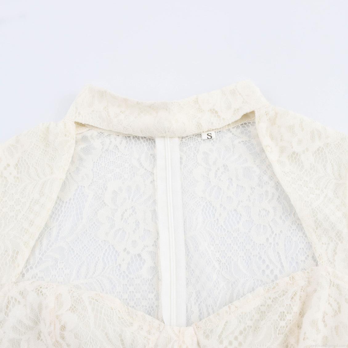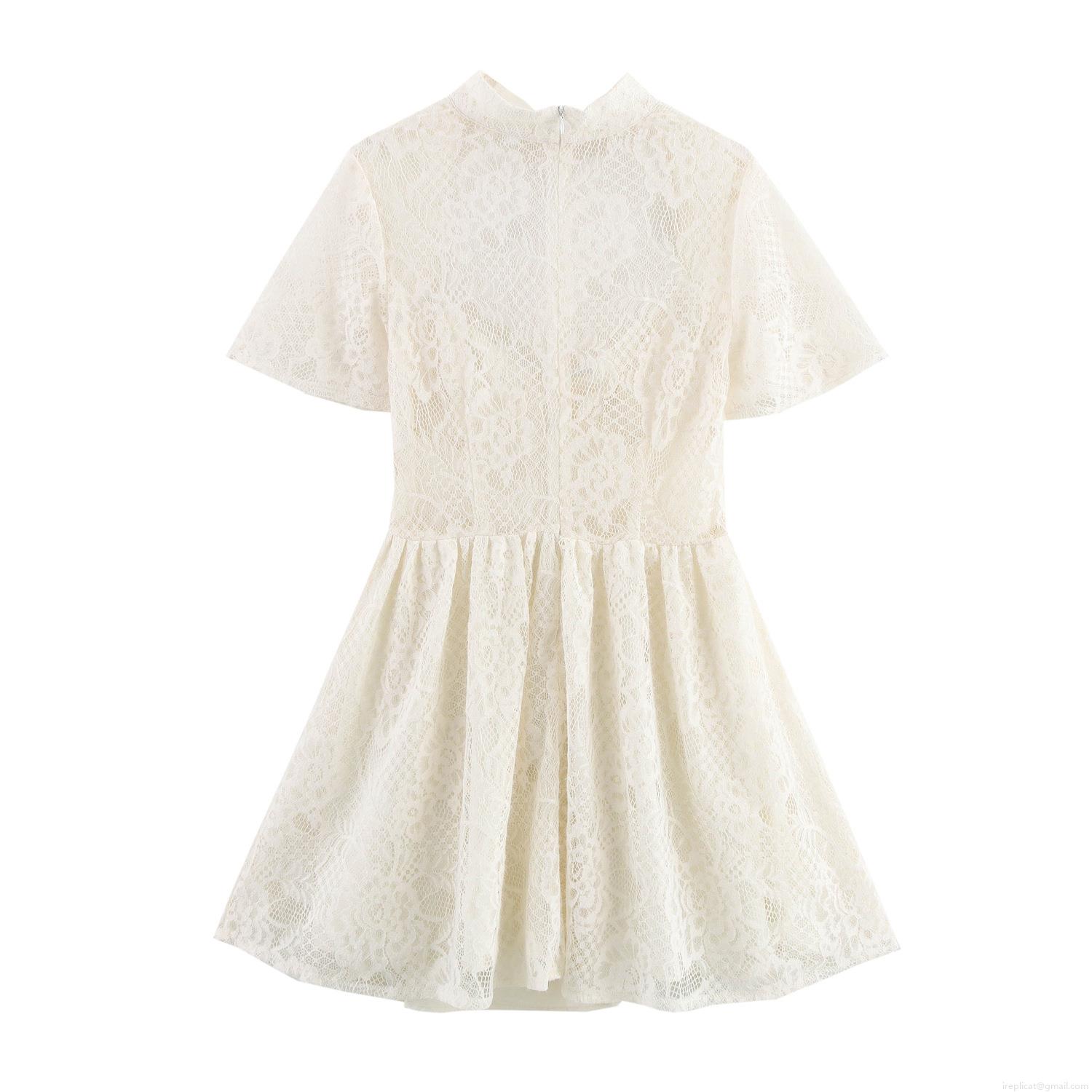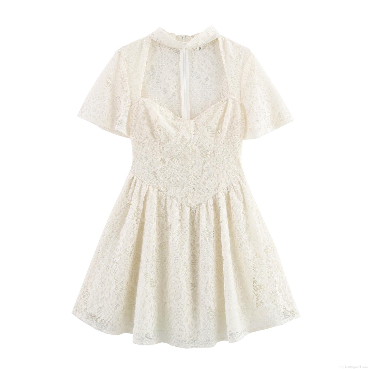 Elegant Women White Lace Dress Heart Neck Short Sleeve Waist-Defining A-Line Mini Dress For Party Evening Wedding Banquet Sexy Polyester Lace Dress
