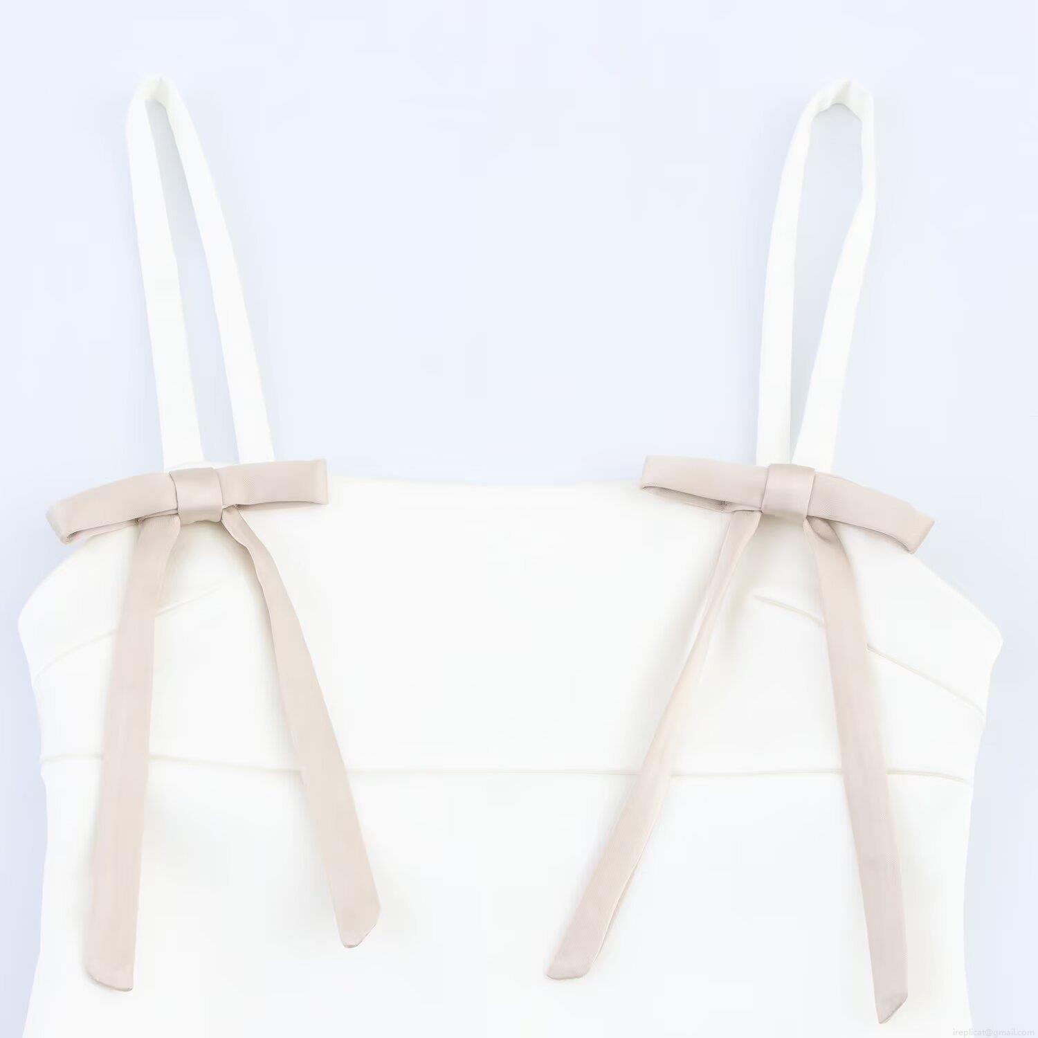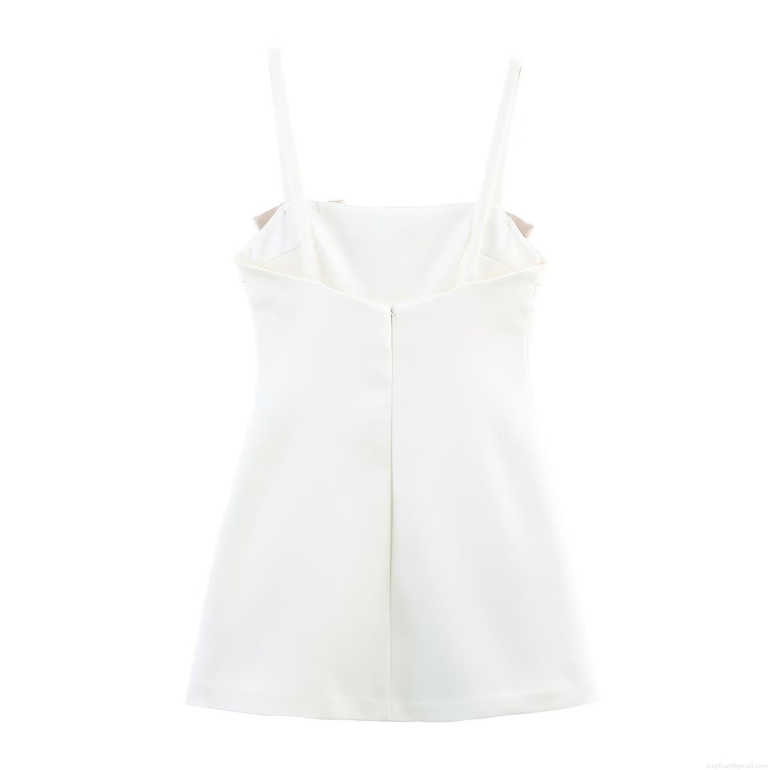 • Elegant Women's Bow Decor Satin Camisole Mini Dress Sleeveless V-Neck Slim Fit Party Banquet Short Dress Solid White Summer Sexy Bodycon Dress