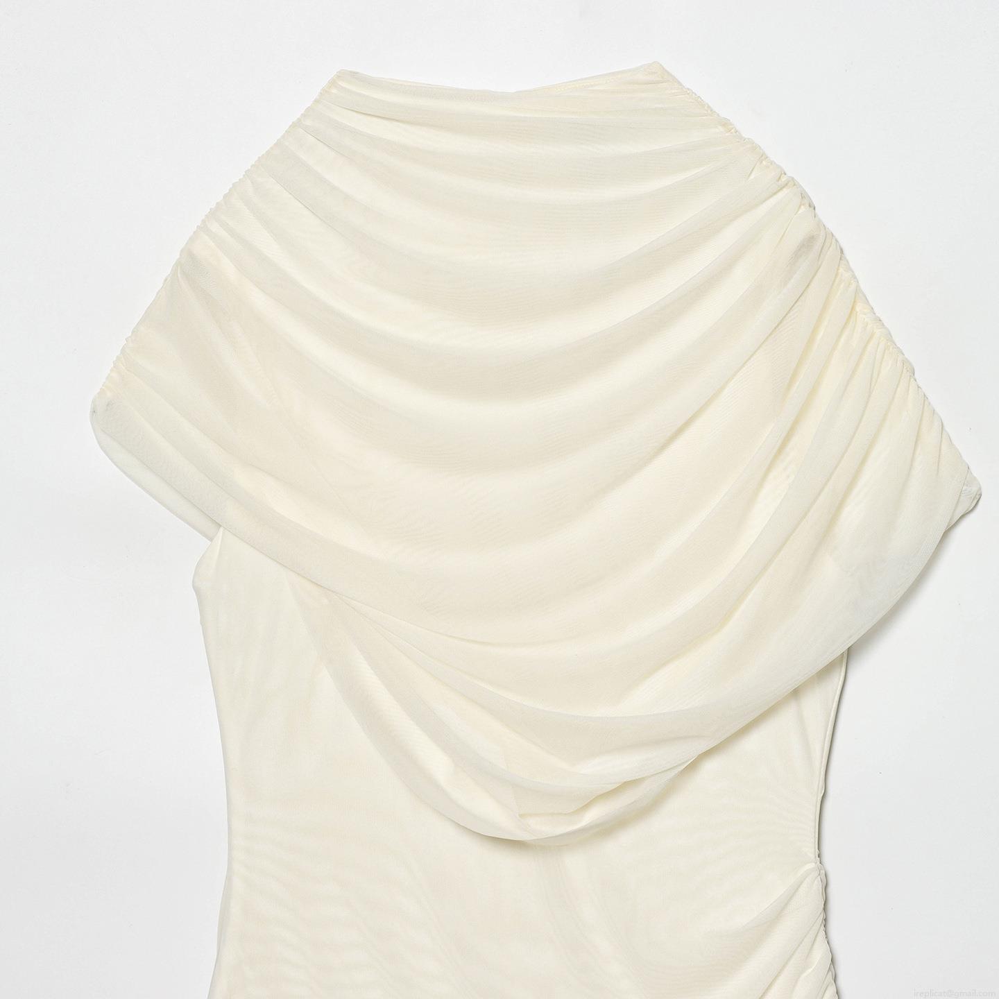 Solid Color, Pleats, Mesh Splicing, Layered Decoration