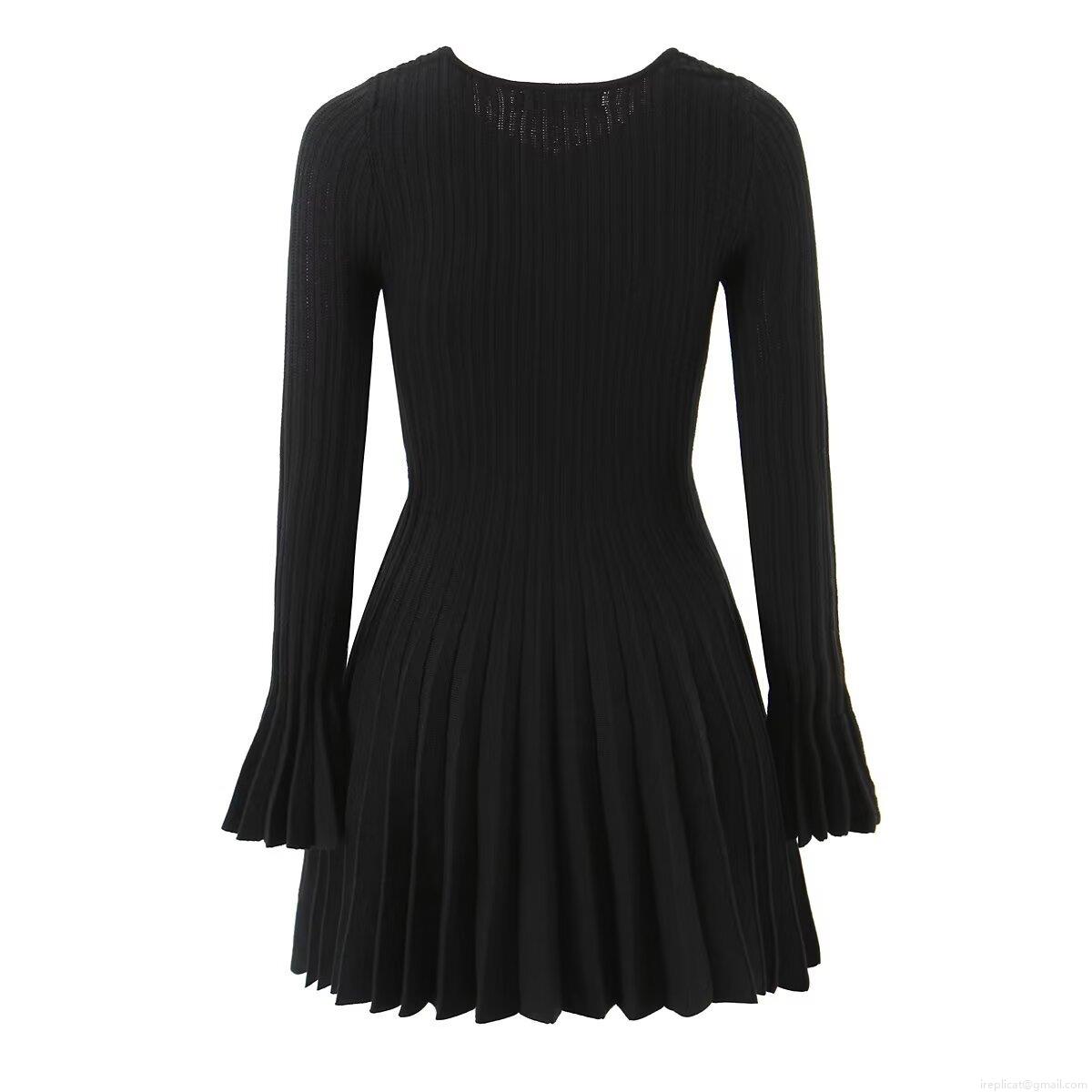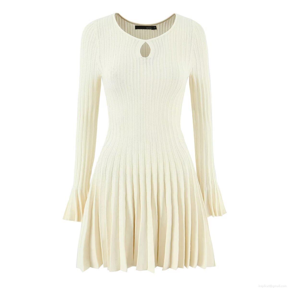 • Elegant Women's Ribbed Knit Mini Dress With Flare Sleeves Hollow Out Round Neck Pleated Skirt French Style Slim Fit Polyester Long Sleeve Dress For Daily Party