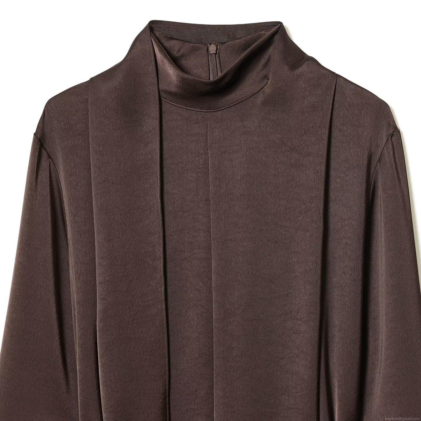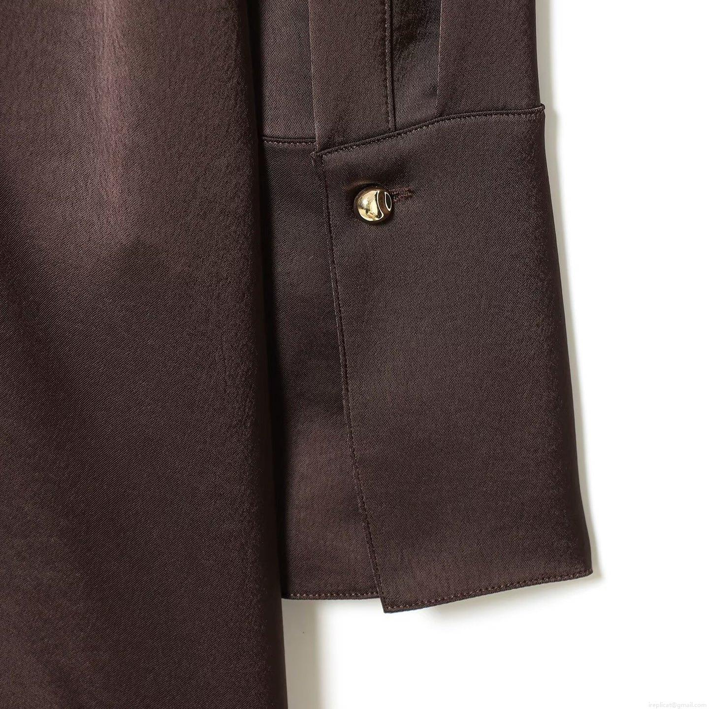 • Elegant Women's Satin Mini Dress Long Sleeve Semi-High Collar With Gold Metal Buckle Belt Dark Brown Silk-Like Loose Fit Cocktail Party Casual Short Dress For Ladies