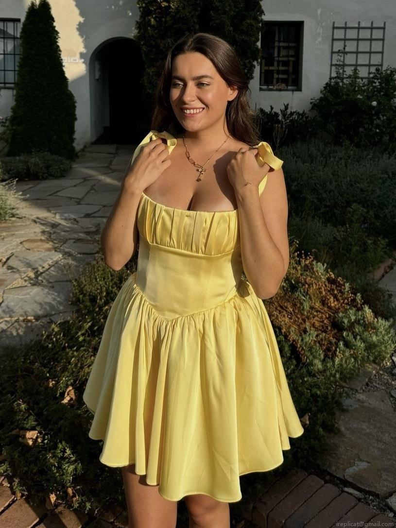 • Elegant Women's Satin-Like Mini Dress Featuring Adjustable Bow Straps And Pleated Bust Design Sleeveless A-Line Backless Solid Color Summer Sundress For Vacation Party Clubwear