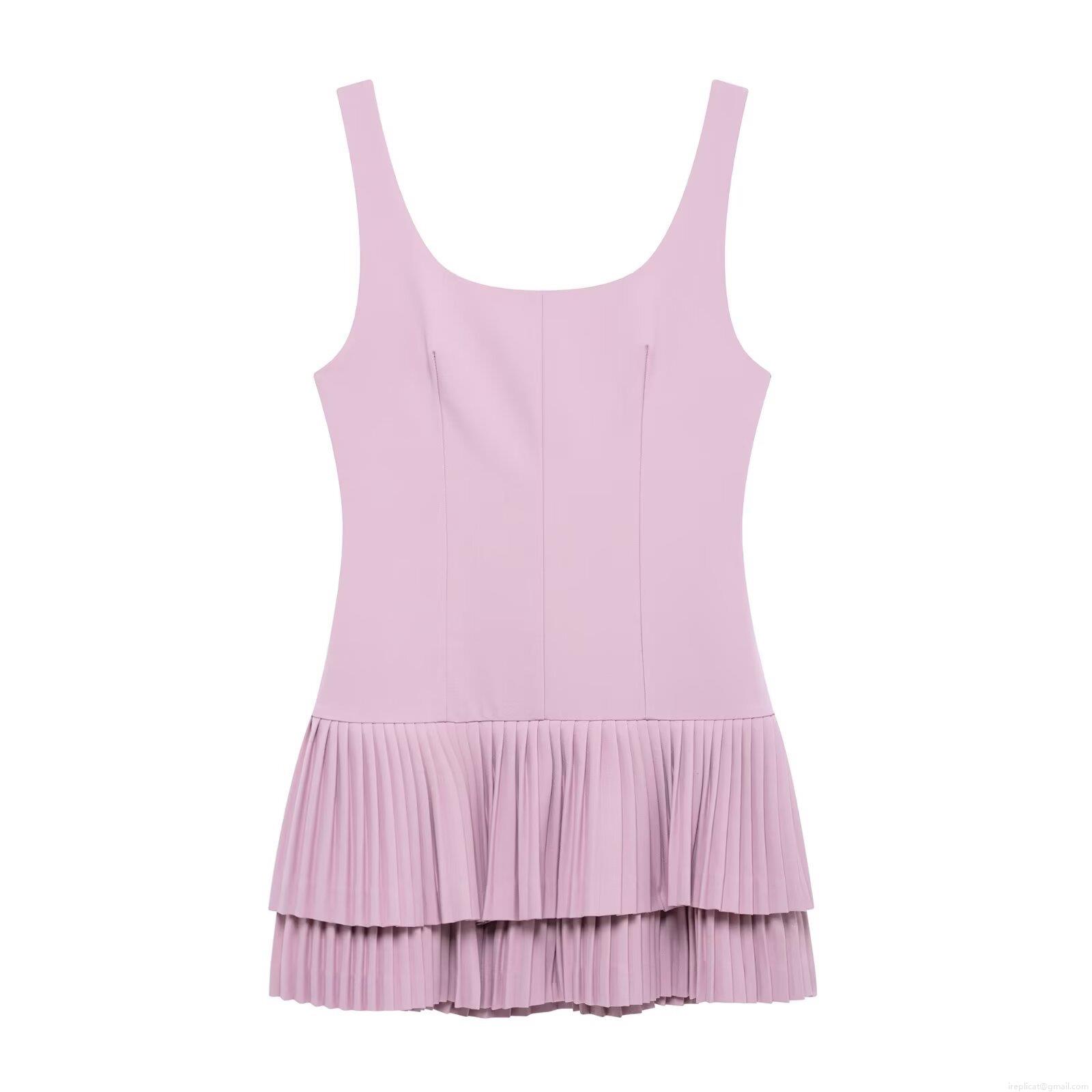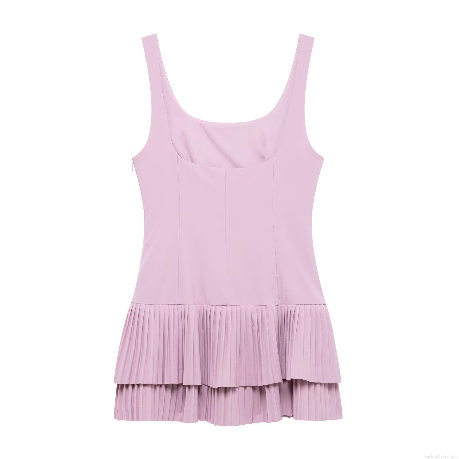 Elegant Women's Sleeveless Square Neck Pleated A-Line Mini Dress Solid Color Double Layer Hem Commuter Summer Short Dress For Ladies Polyester