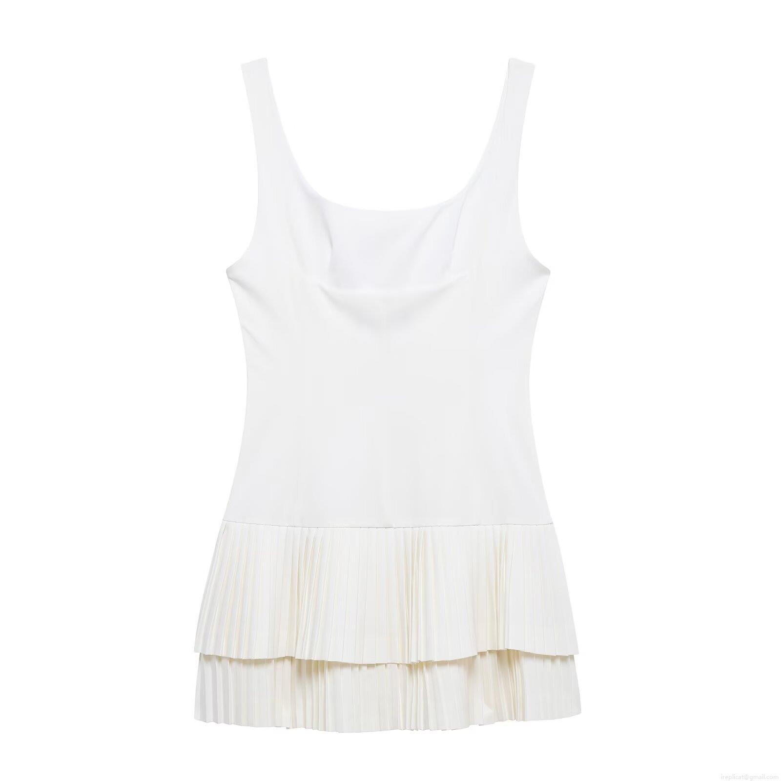 • Elegant Women's Sleeveless Square Neck Pleated A-Line Mini Dress Solid Color Double Layer Hem Commuter Summer Short Dress For Ladies Polyester