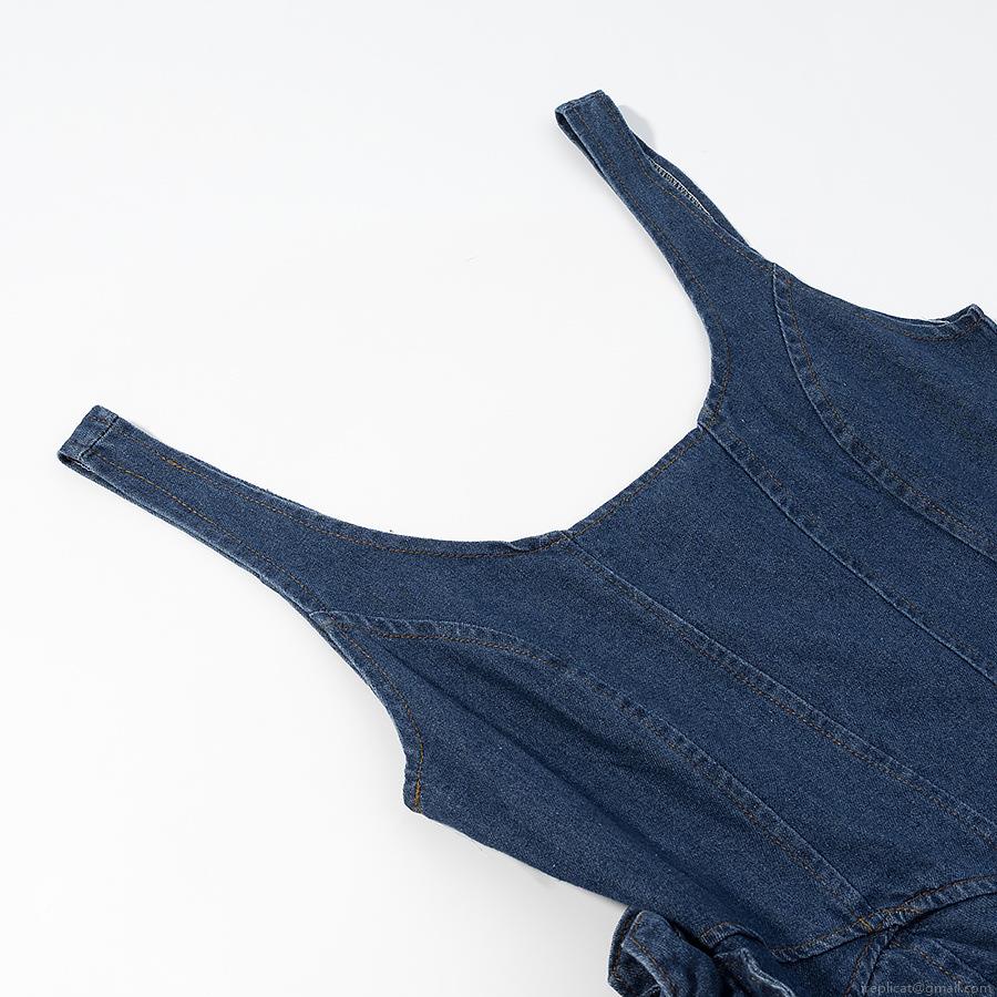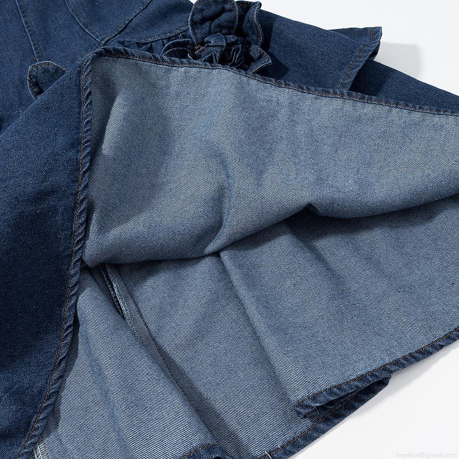 Fashion Women Sweet Cool Denim Mini Dress With 3D Flower Decoration Ruffle Hem Sleeveless Wide Straps Metal Zipper Sexy Spicy Girl Style Cotton Blend Denim Dress
