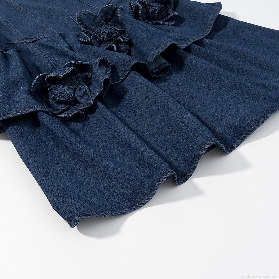 • Fashion Women Sweet Cool Denim Mini Dress With 3D Flower Decoration Ruffle Hem Sleeveless Wide Straps Metal Zipper Sexy Spicy Girl Style Cotton Blend Denim Dress