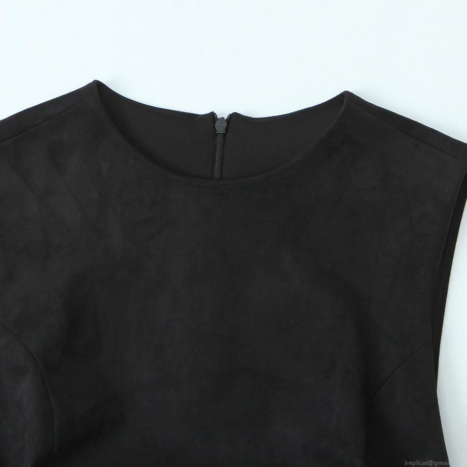 Fashion Women's Faux Suede Sleeveless Mini Dress Layered Ruffle Hem Round Neck A-Line Sexy Chic Party Short Dress