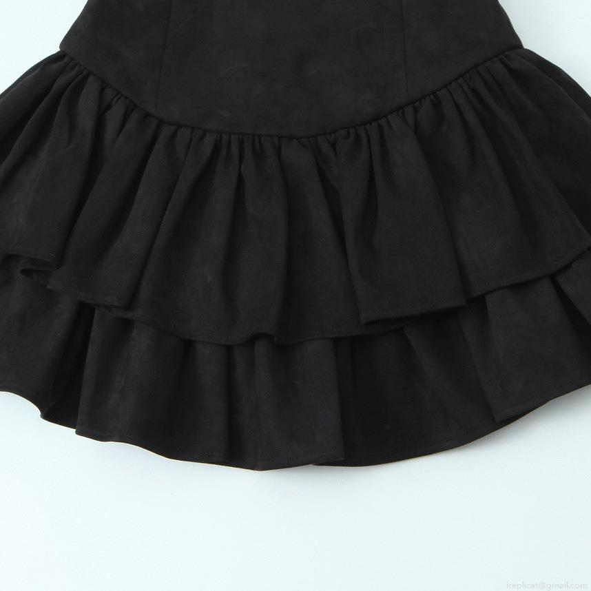 • Fashion Women's Faux Suede Sleeveless Mini Dress Layered Ruffle Hem Round Neck A-Line Sexy Chic Party Short Dress