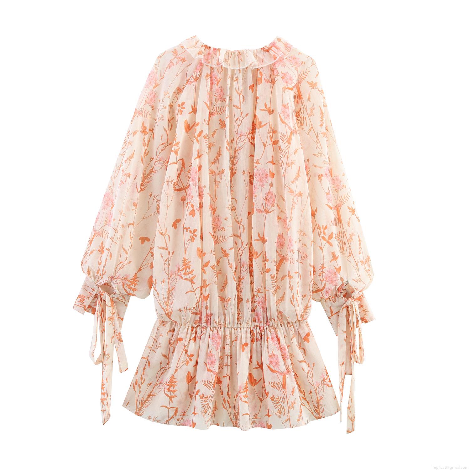 • Floral Dress Chiffon Bohemian Long Sleeve Ruffle Tie Round Neck High Waist Mini Dress For Women Summer Vacation Casual Elegant A-Line Clothing