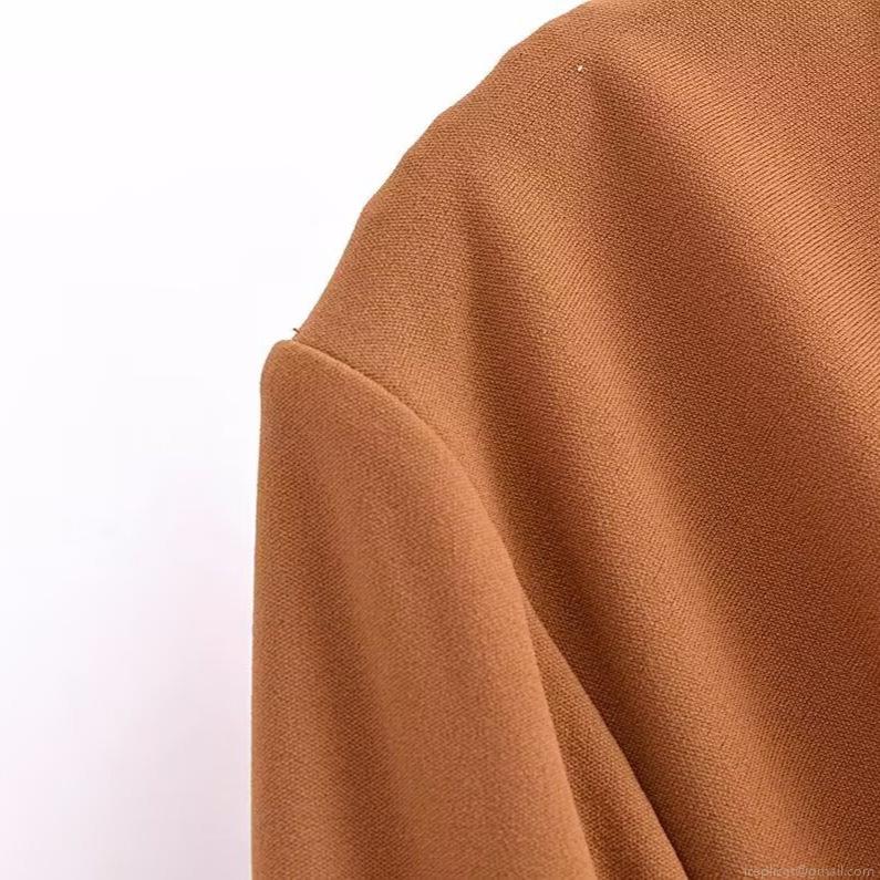 • French Elegant Cowl Neck Long Sleeve Dress Women Autumn Winter Commute Slim Fit Ruched Bodycon Mini Skirt Deep Brown Polyester Party Clubwear