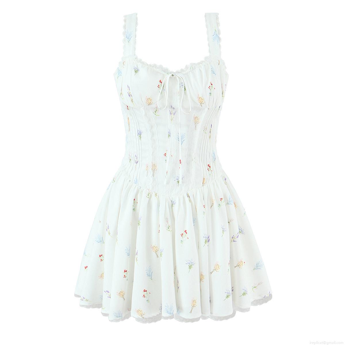 • French Style Floral Print Mini Dress With Lace Trim Sweet Spaghetti Strap Corset Dress Women Sexy Backless Party Clubwear Vacation Beachwear