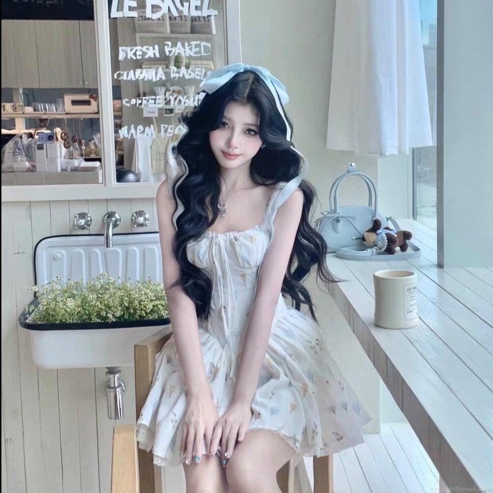 French Style Floral Print Mini Dress With Lace Trim Sweet Spaghetti Strap Corset Dress Women Sexy Backless Party Clubwear Vacation Beachwear