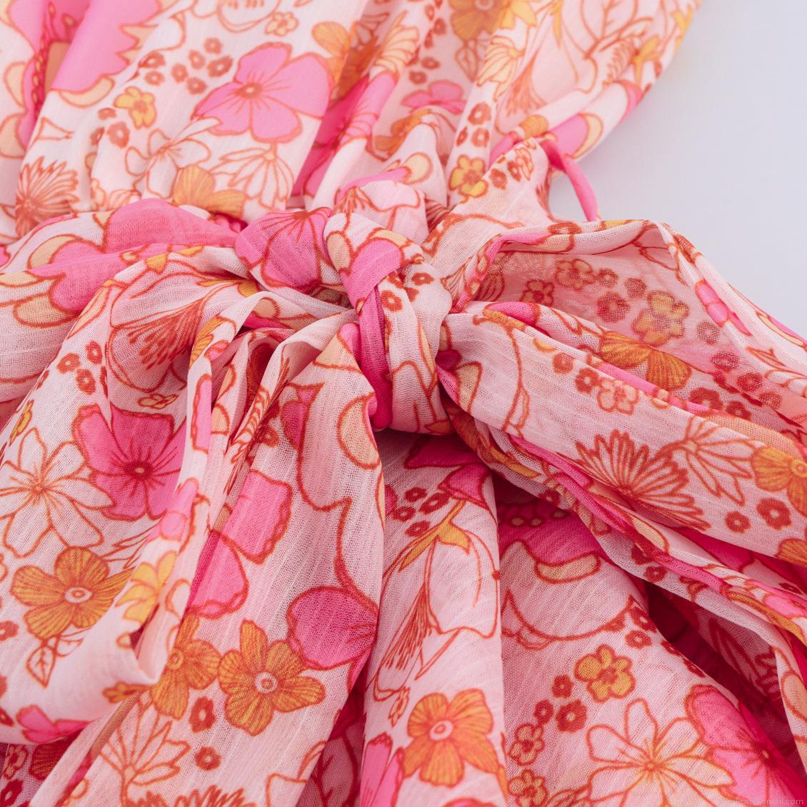 French Style Floral Print V-Neck Dress For Women Pink Chiffon Long Sleeve Mini Dress With Lace Trim Tiered Ruffle Hem Bow Tie Waist Elegant Casual Summer Vacation Party Dress