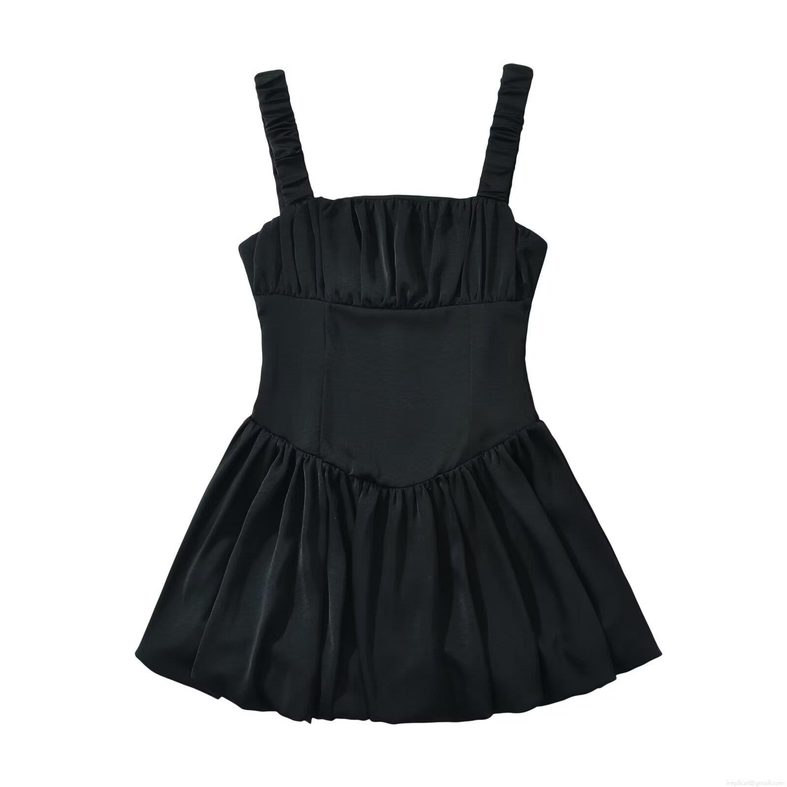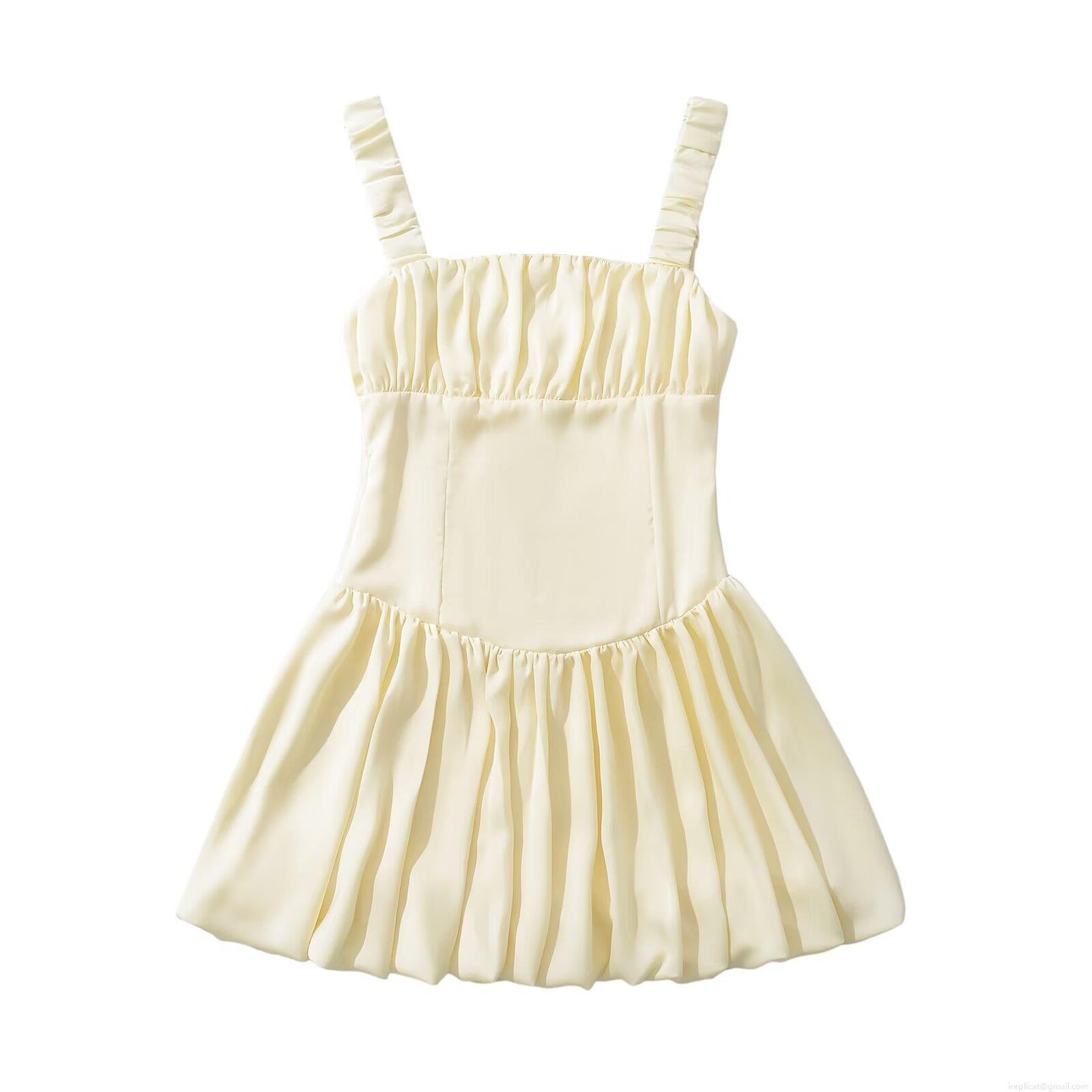 Solid Color, Pleats, Waist shaping, Gathering, Ruffled Shoulder Strap, Bubble Skirt