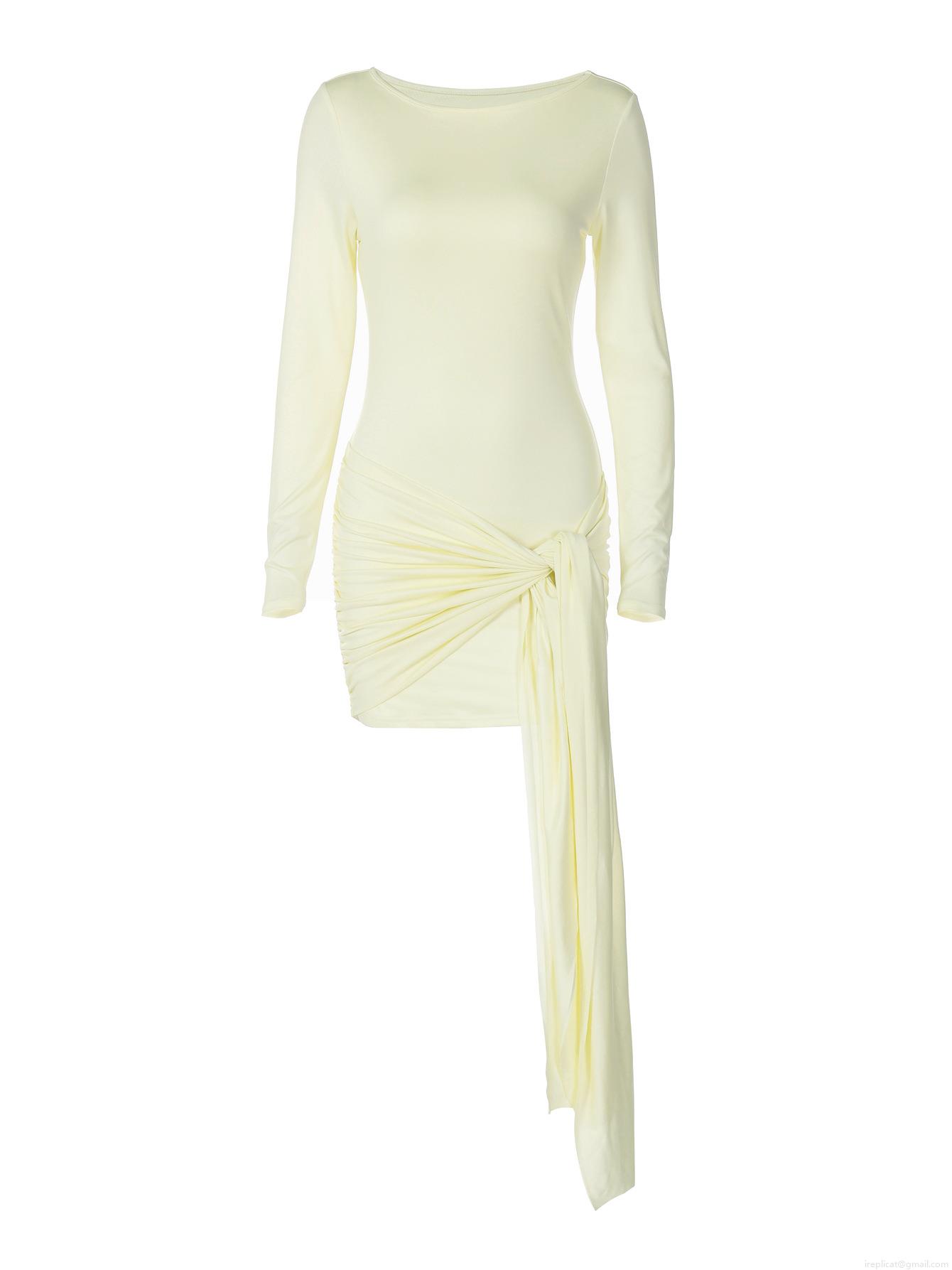 • French Style Sexy Bodycon Mini Dress For Women Ruched Drawstring Round Neck Long Sleeve Polyester Spandex Solid Color Tight Dress For Autumn Party Clubwear