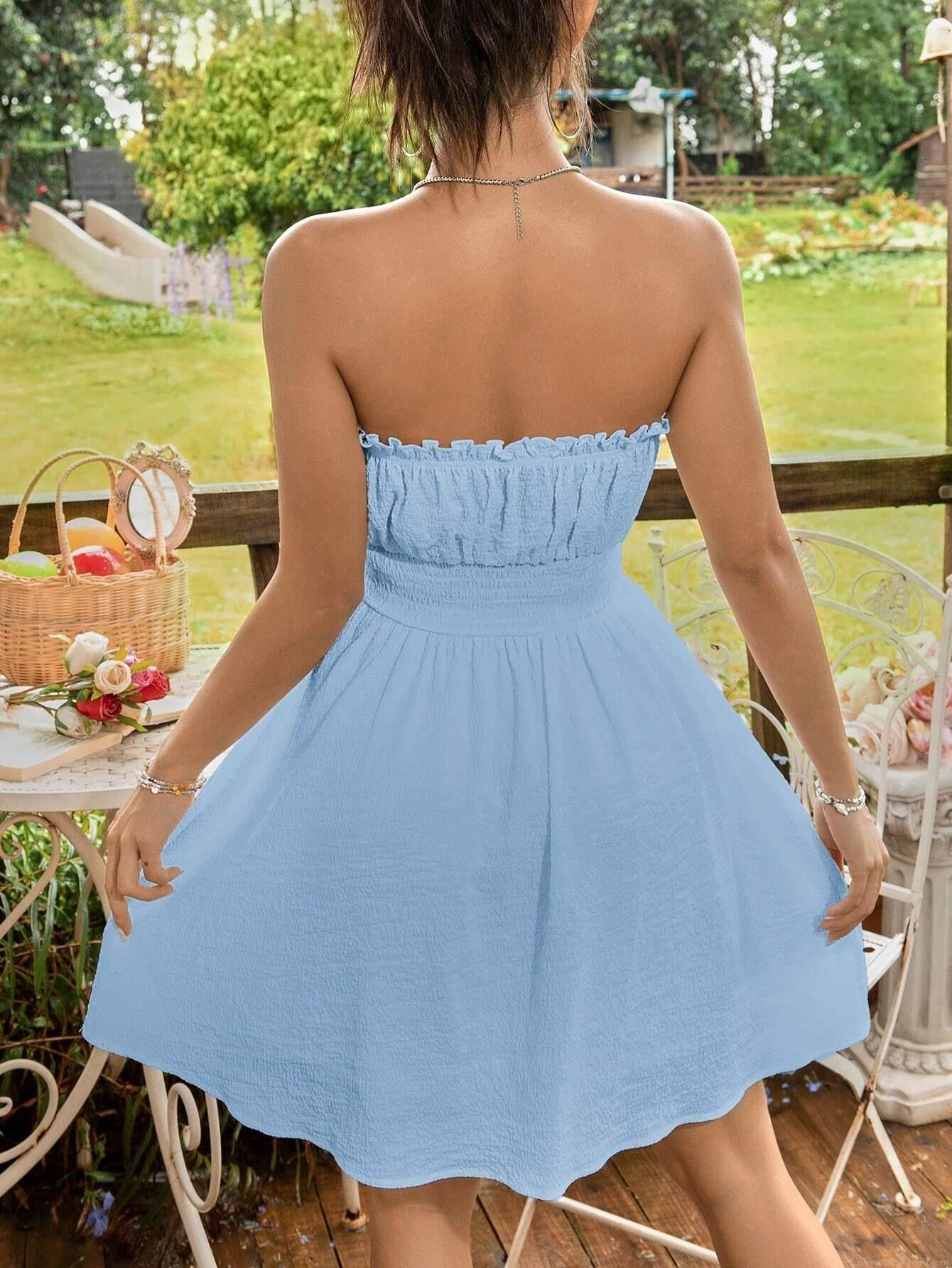 • French Style Sexy Tube Top Seersucker Mini Dress Women's 97% Polyester 3% Elastane Slim Fit Bow Tie Front Bodycon A-Line Summer Vacation Short Sundress