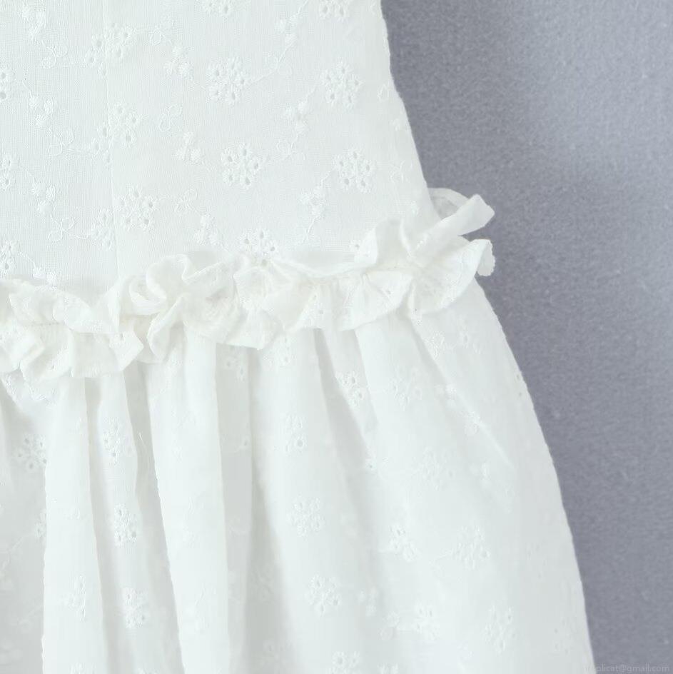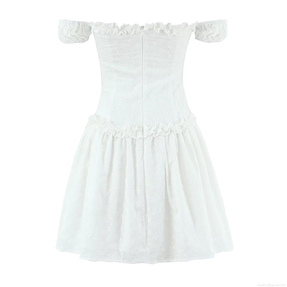 • French Style Women White Cotton Eyelet Embroidery Mini Dress Sexy Corset Lace-up Ruffle Off-Shoulder Puff Sleeve Slimming A-line Party Dress