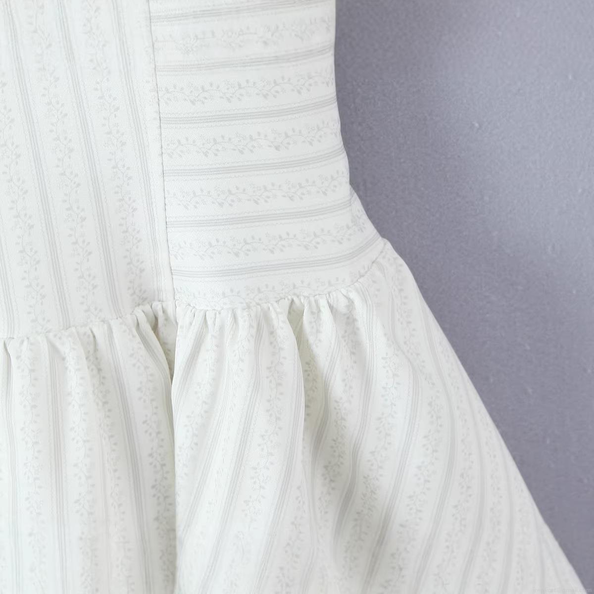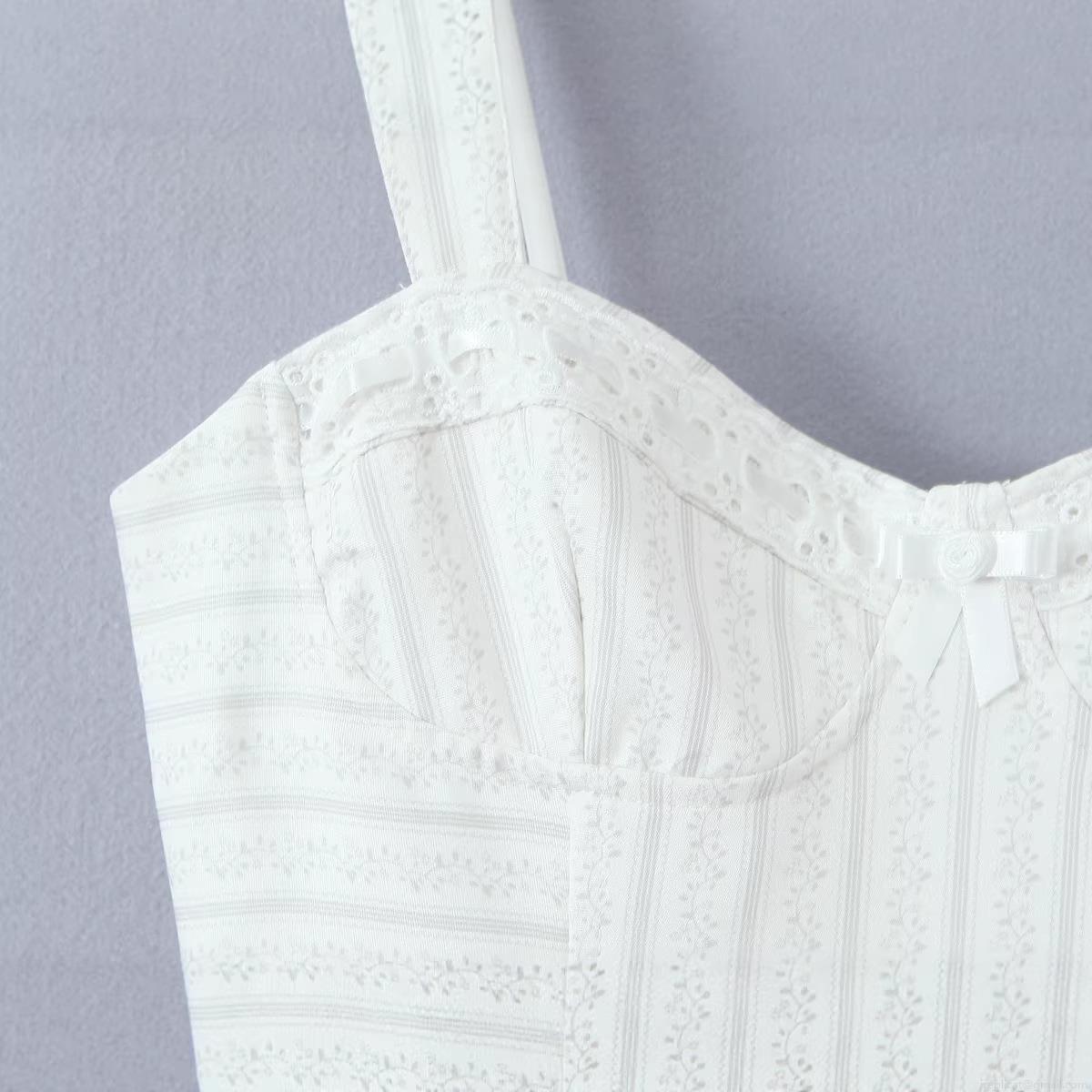 Bow, Floral Pattern, Backless, Vertical Stripes, Thin Straps, Lace Trim, Lace Patchwork