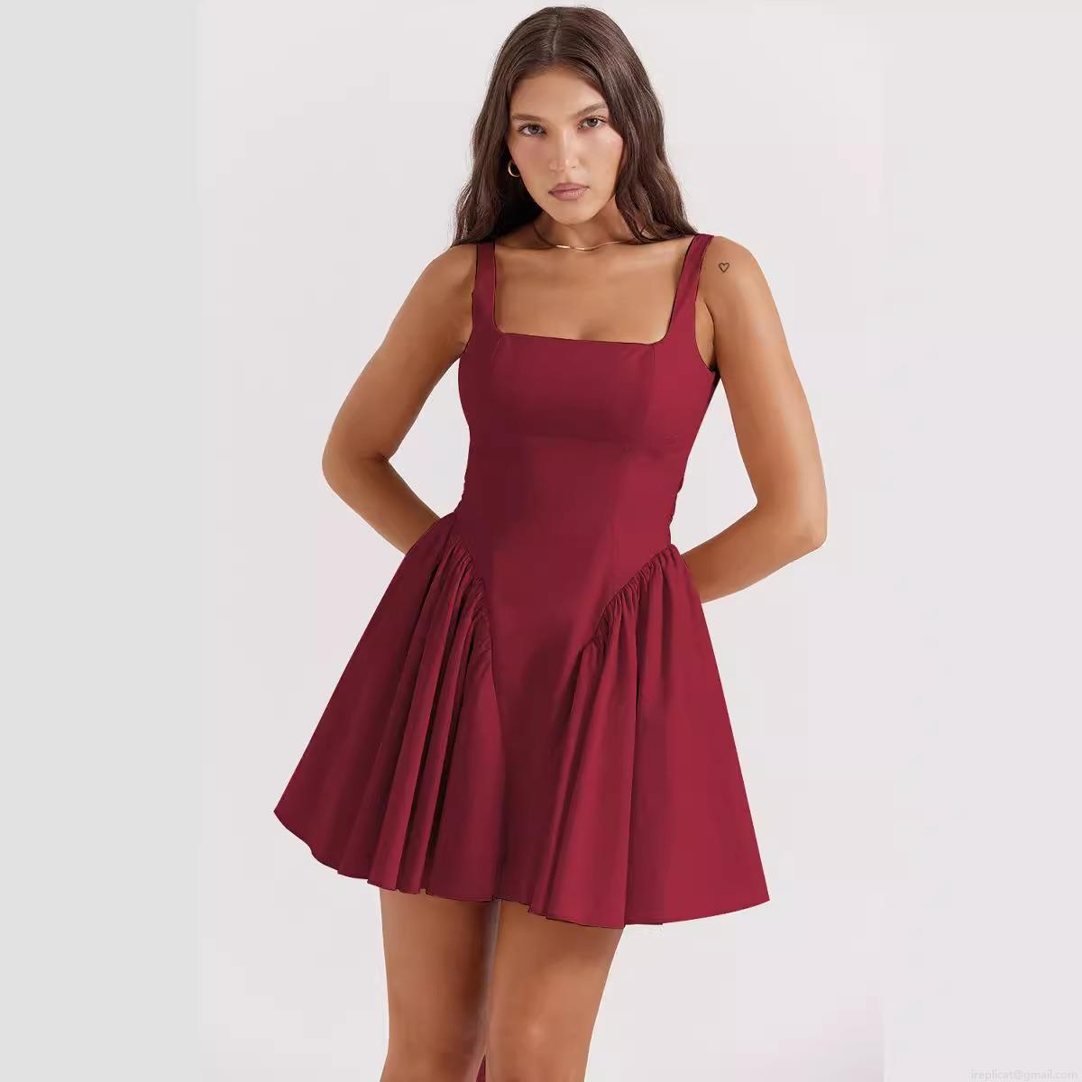 • French Vintage Backless Mini Dress Polyester Square Neck Sleeveless High Waist Big Bow Dress For Women Summer Casual Vacation Party